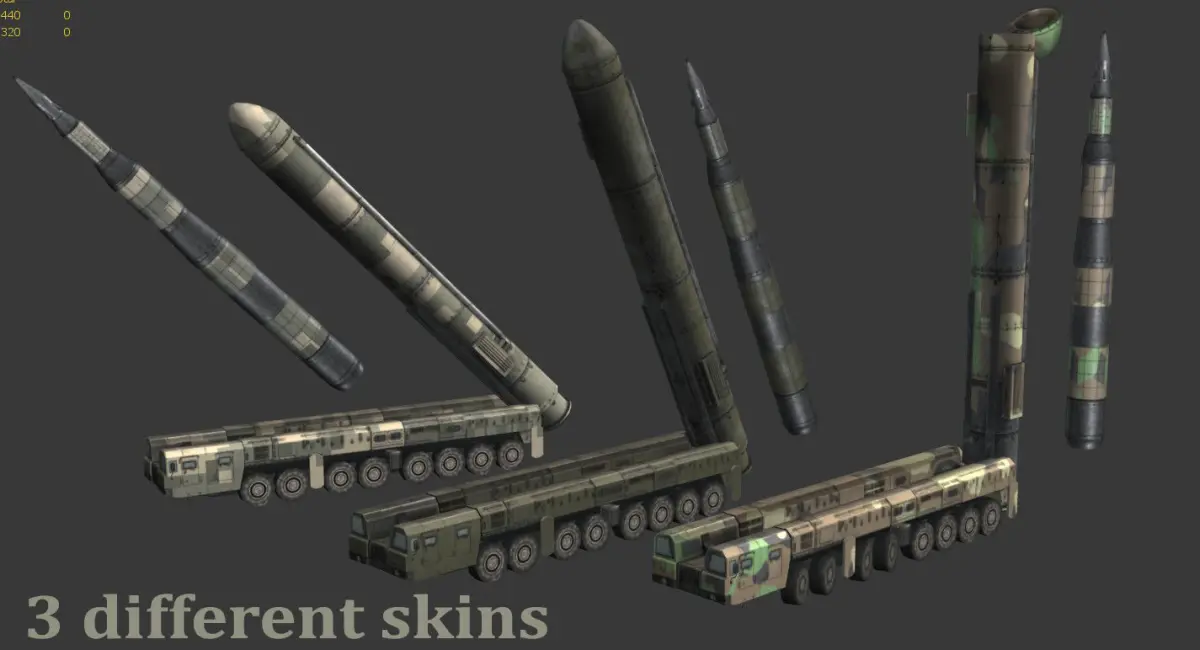 Game ready, low poly 3D model of russian nuclear rocket launcher Topol-M. Wheels, rocket and turret are rseparated. Textures are baked into one 2K diffuse map. Max file is provided.