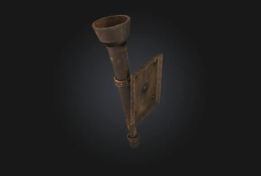 The Torch Holder is a detailed wall-mounted or freestanding bracket designed to securely hold torches in castles, dungeons, or ancient corridors. Perfect for fantasy environments, historical interiors, or atmospheric lighting scenes.