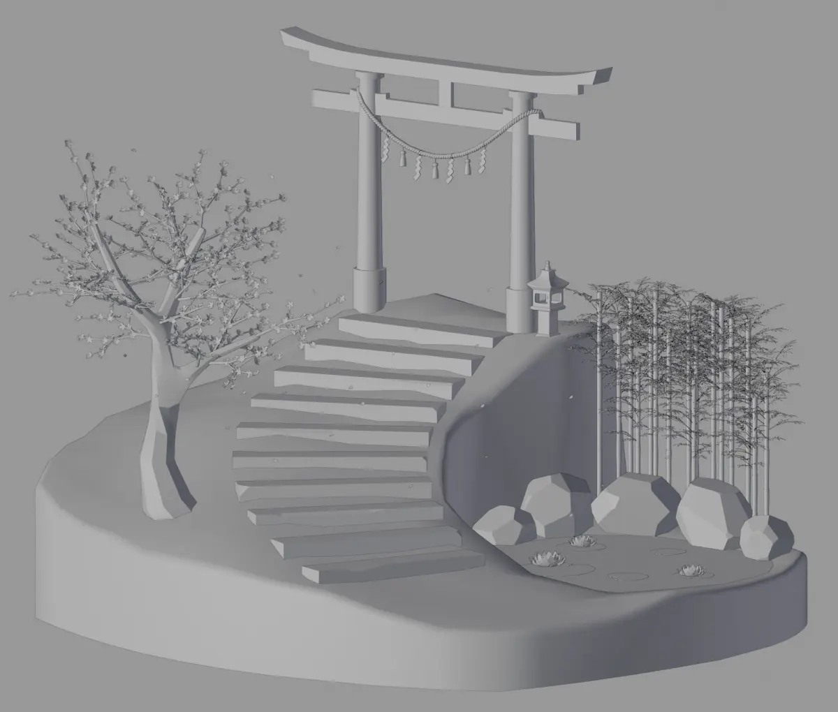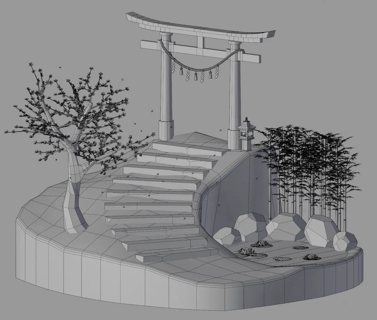 I am pleased to present this torii gate that will blend into any decor of this style! You can integrate this 3d models into all your games or animations and create a unique decor of which only you have the secret ! This pack contains: