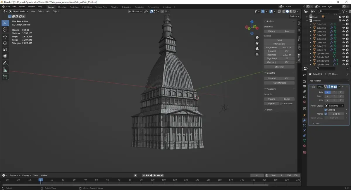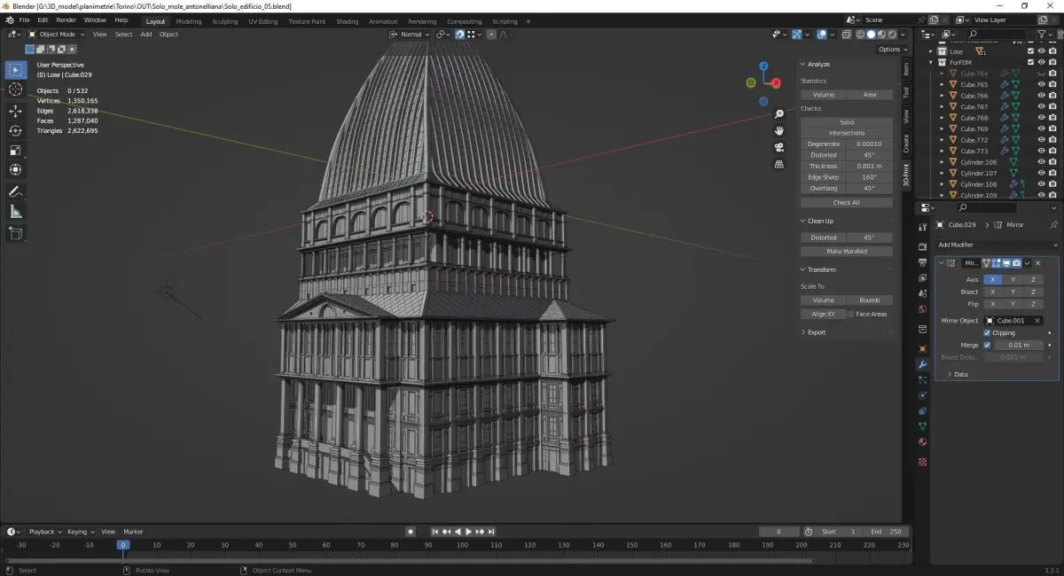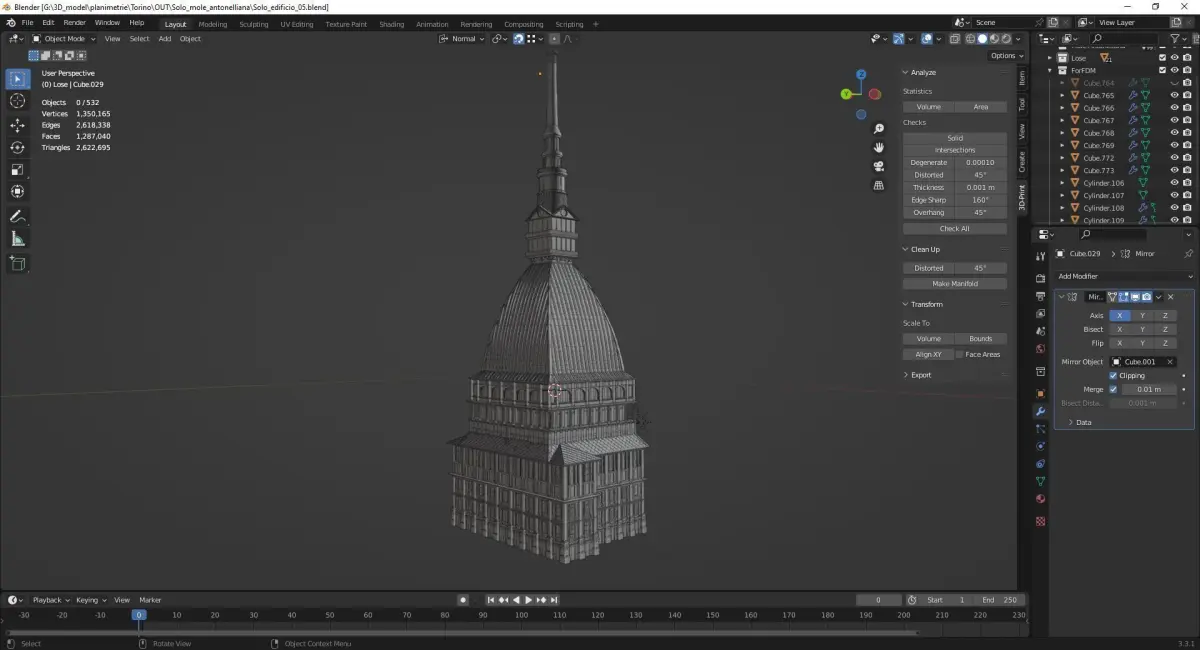 In the file that you have downloaded you can find a 3d model of Mole Antonelliana Turin ITALY, that you can use for your games, renders, movies and everything in CGI, with different materials that you can use to modify your renders.