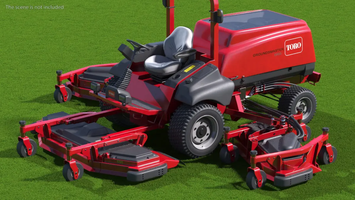 Toro Groundsmaster 5900 Rotary Mower Rigged for Cinema 4D is a three-dimensional model of large-scale commercial lawn mower designed for precision mowing and grass cutting in large lawn areas.