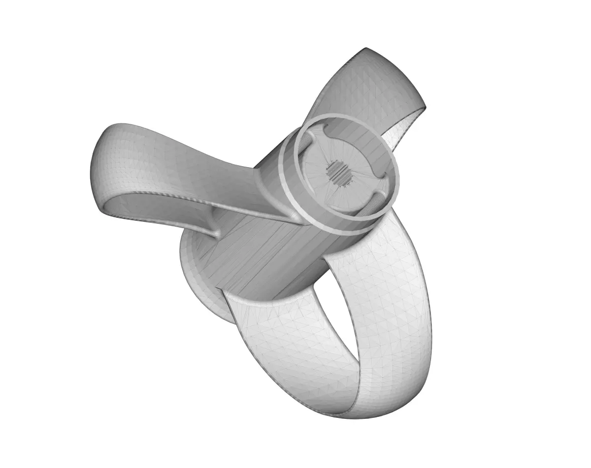 Toroidal boat propeller. It's Solidworks model was exported in other CAD formats. This 3D model can used in producing on CNC machines and for 3D printing.Toroidal boat propeller dimensions: Main diameter - 11 3/8Inch (29cm) , Height - 5,9 Inch (15cm), hub diameter - 3,5" Inch (9cm), 19 spline tooth, 3 blades.