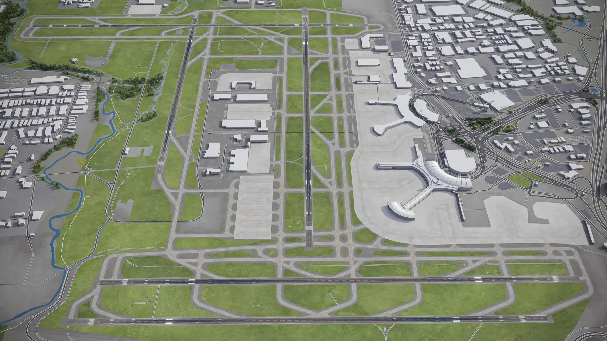 This is exact and accurate to scale 3D model of Toronto Pearson International Airport - YYZ and its surrounding area based on GIS data (August 2020)