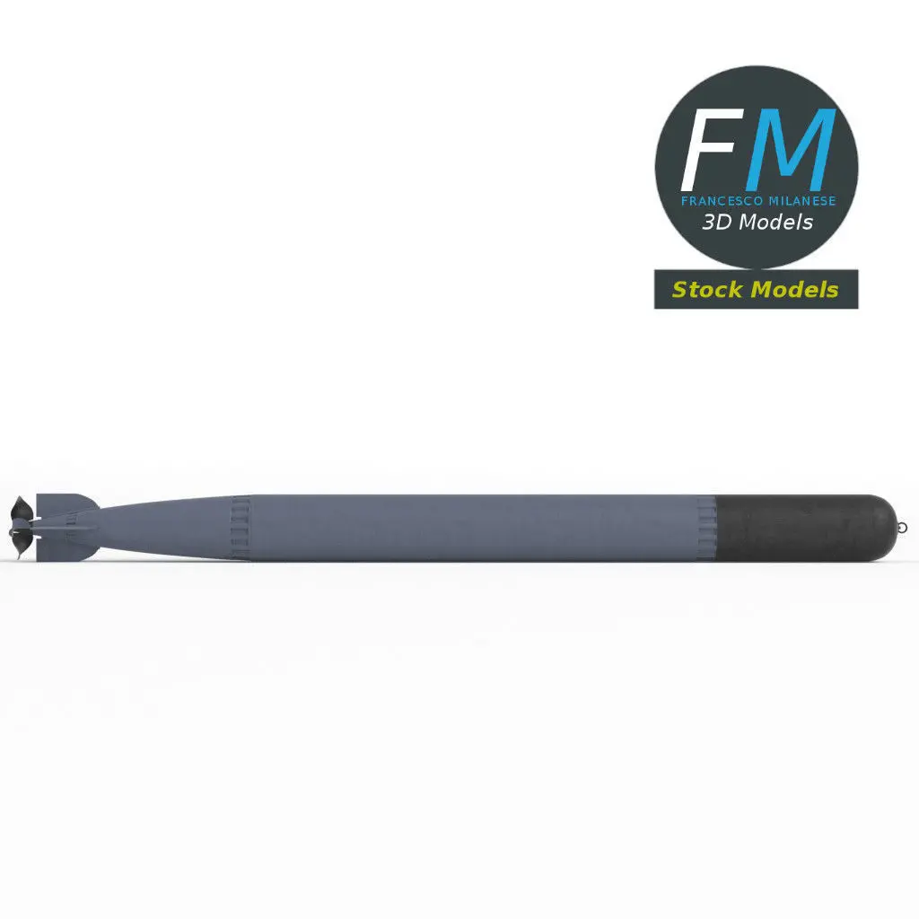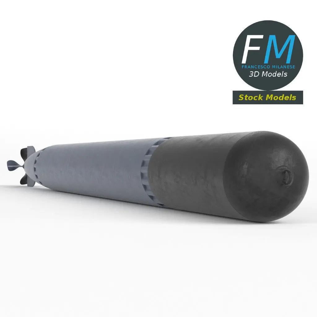 Torpedo weapon 3D Model. 2 invidividual objects (main body, propeller; so, you can easily rotate or even animate it), sharing the same non overlapping UV Layout map, Material and PBR Textures set. Production-ready 3D Model, with PBR materials, textures, non overlapping UV Layout map provided in the package.