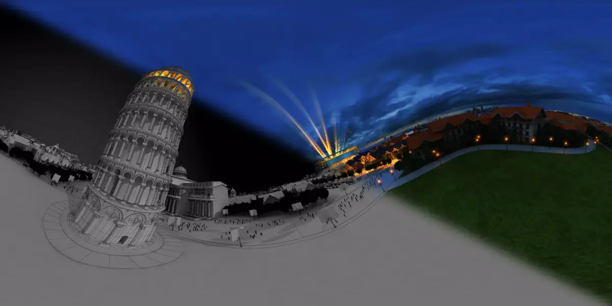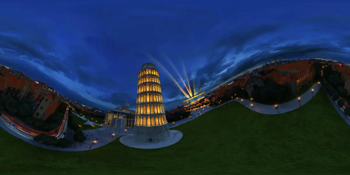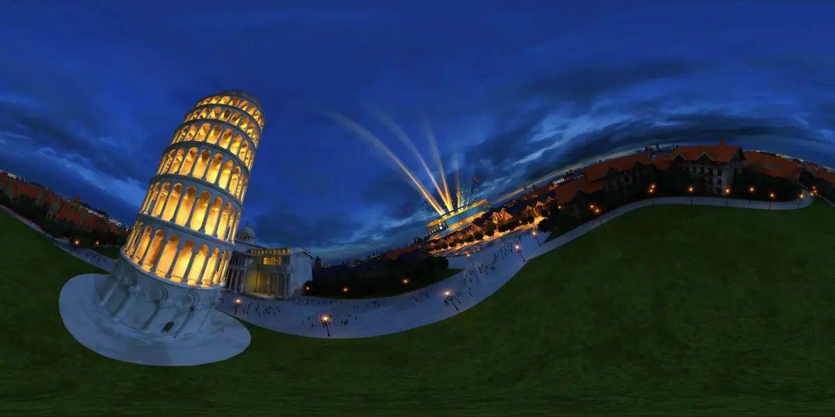 The Leaning Tower of Pisa is an eight story white marble bell tower in Romanesque architectural style, with a total height of 56 meters (some say 54.5 meters) above ground level (58.36 meters from the base). The entire building is a hollow cylindrical masonry structure, with 213 arched gates composed of cylinders from bottom to top. The bottom layer is a solid wall, with 15 columns engraved with exquisite reliefs. The middle 6 layers consist of 31 cylinders, decorated with continuous coupons in the form of face shields; The top layer consists of 12 cylinders, which contract inward as the end. There is a spiral staircase inside the tower, connecting all the corridors and reaching the top of the tower. The Leaning Tower of Pisa, along with adjacent cathedrals, baptisteries, and cemeteries, had a significant impact on Italian architectural art from the 11th to the 14th century. The center of the screen presents a replica of the Leaning Tower of Pisa (including supporting church buildings), accompanied by a modern sports stadium (with a light show effect on the top), surrounded by a European style building complex (red tiled roofs), combining urban night lighting with the distant modern urban skyline.Model making software: 3ds Max 2014Rendering software: vray3.60.03 for 3dmax2014Note: Tree planting plugin is used in the scene: multi scatter 1.20.12 for 3D Max 2014 3ds Max. In the scene, as long as the street trees use the multi scatter 1.20.12 plugin, the bird's-eye view trees do not use the plugin for planting. There are various levels of buildings in the scene file, making it convenient for users to choose the architecture and scene refinement according to their needs. It is recommended to use 3ds Max 2014 and later software to open and use it.