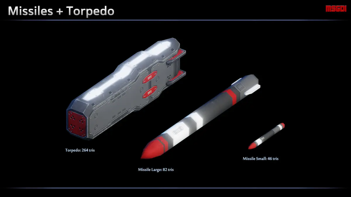 - final tris count depends on how many weapons are used for the ship