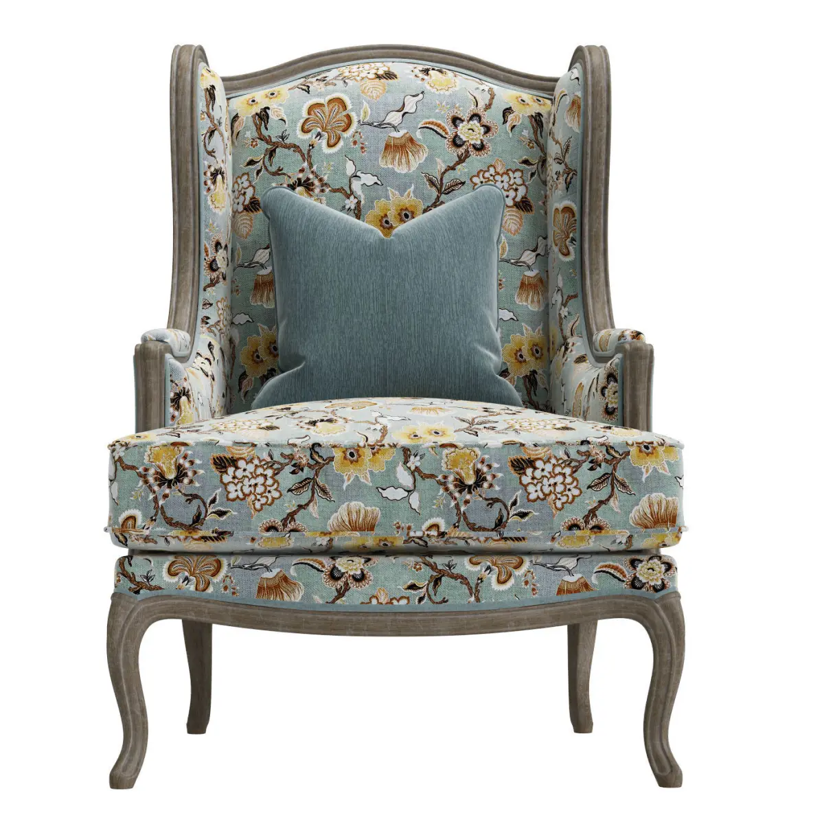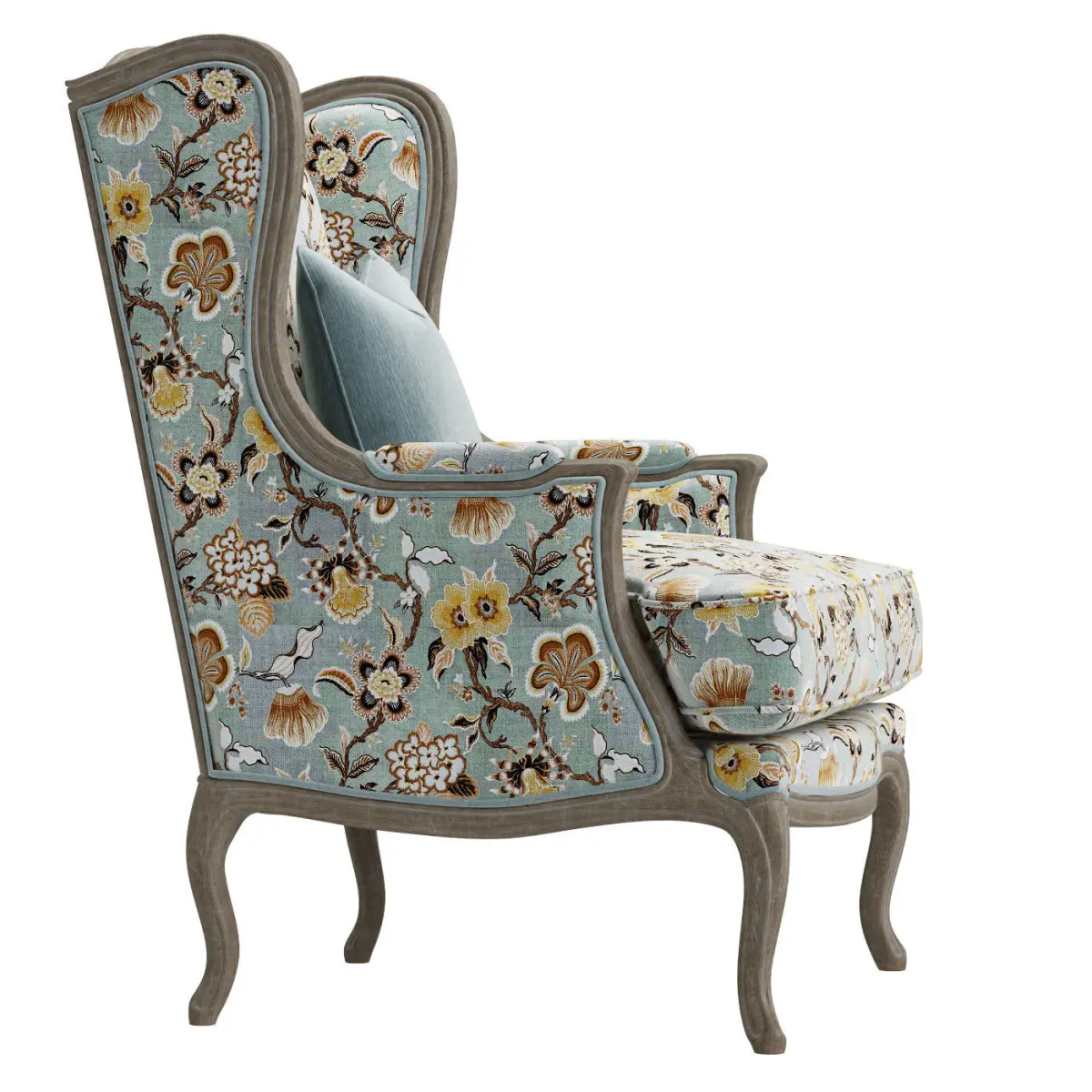 Classic upholstery armchair with wooden carved details