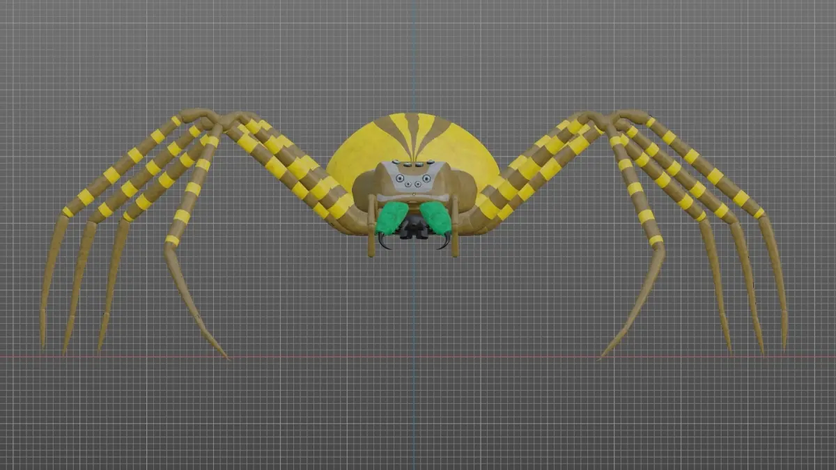 The 3D model represents a generic semirealistic spider with all the outward characteristics similar to a real spider.All the appendages of the spider and the abdomen are fully articulated and mobile like in a real spider and therefore it is possiblecreate natural poses and animations mimicking the behaviors of the spider in nature. The package also includes models of thesIpider in 4 different pose features.