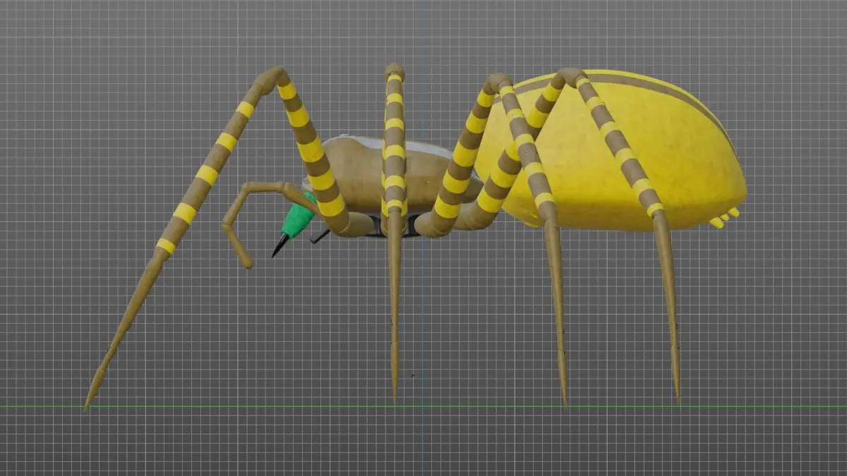 The animation is in .blend format.Using Blender it is possible to move the spider with inverse kinematics technology (rigged IK)