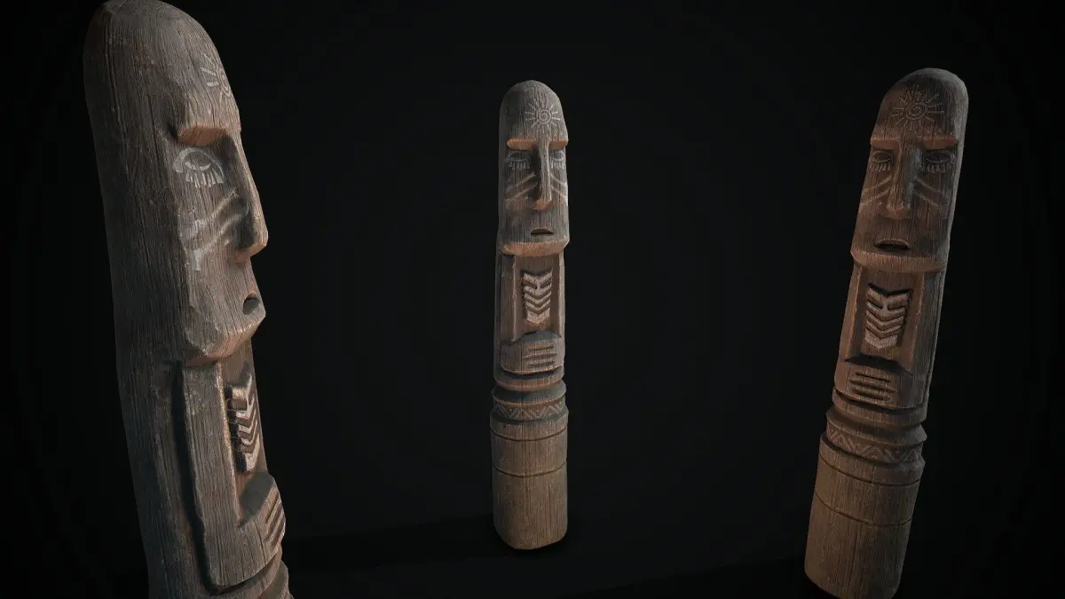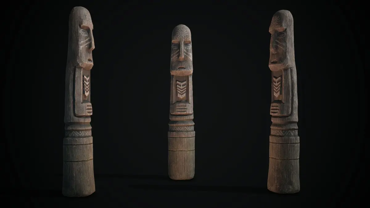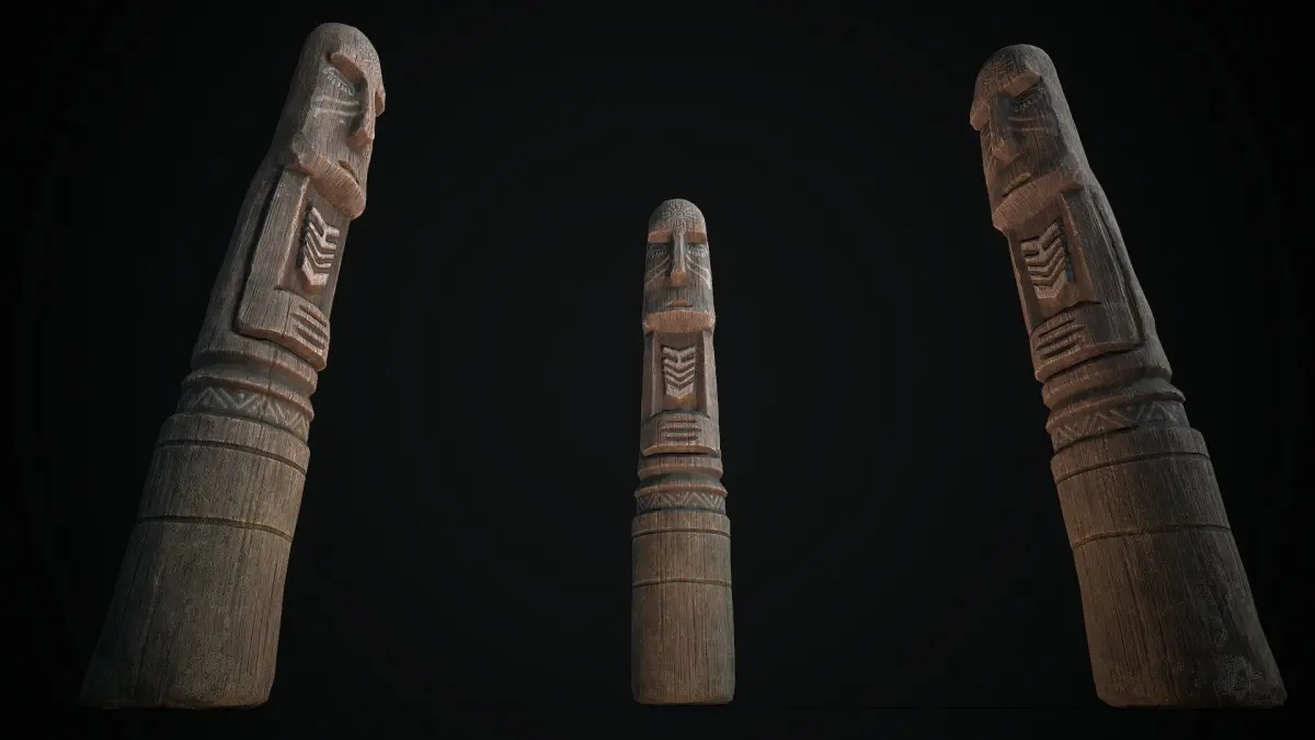 Totem wood pole 1low poly model for pbr, texture res. 4k(albedo,metallic, roughness,ao,normal)format inlude:*fbx*obj*max
