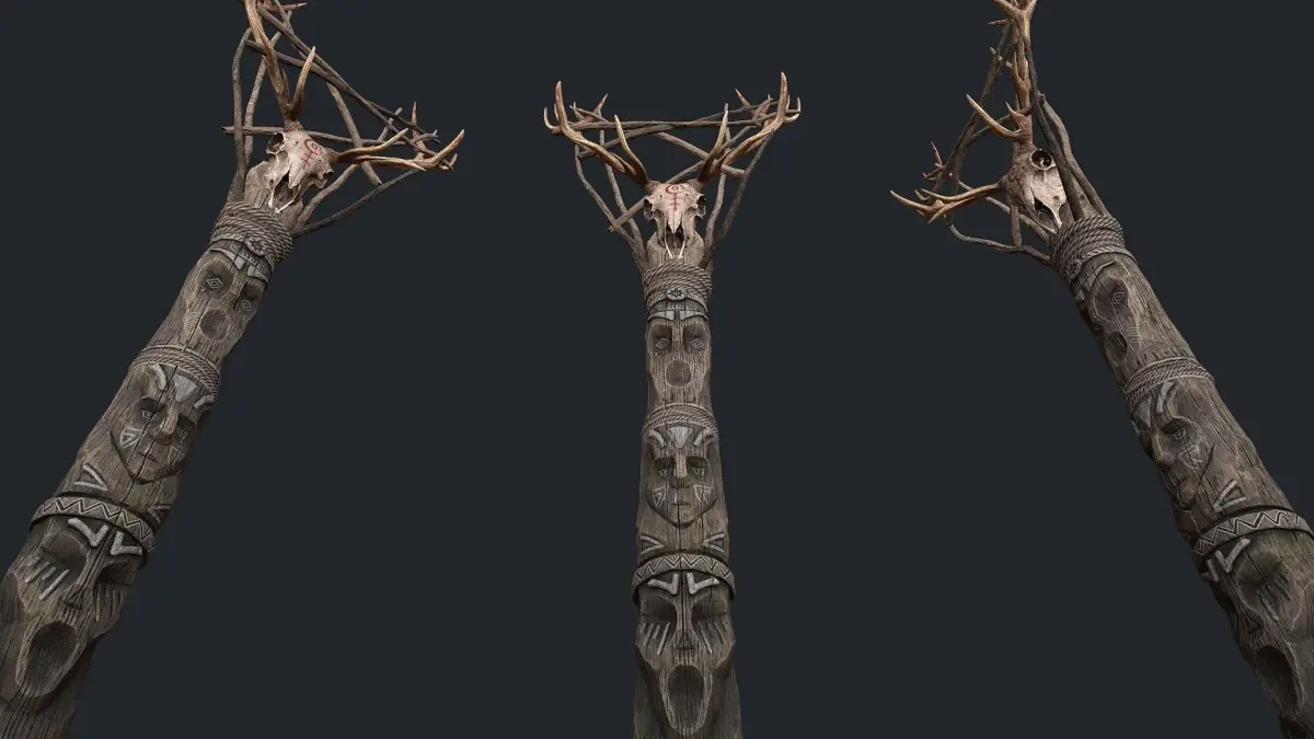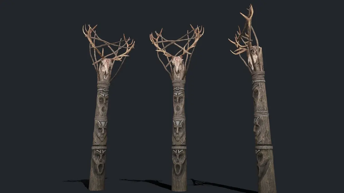 Totem wood pole 4 low poly model for pbr, 2 Variant texture, old and new texture res. 4k(albedo,metallic, roughness,ao,normal) format inlude: *fbx *obj *max