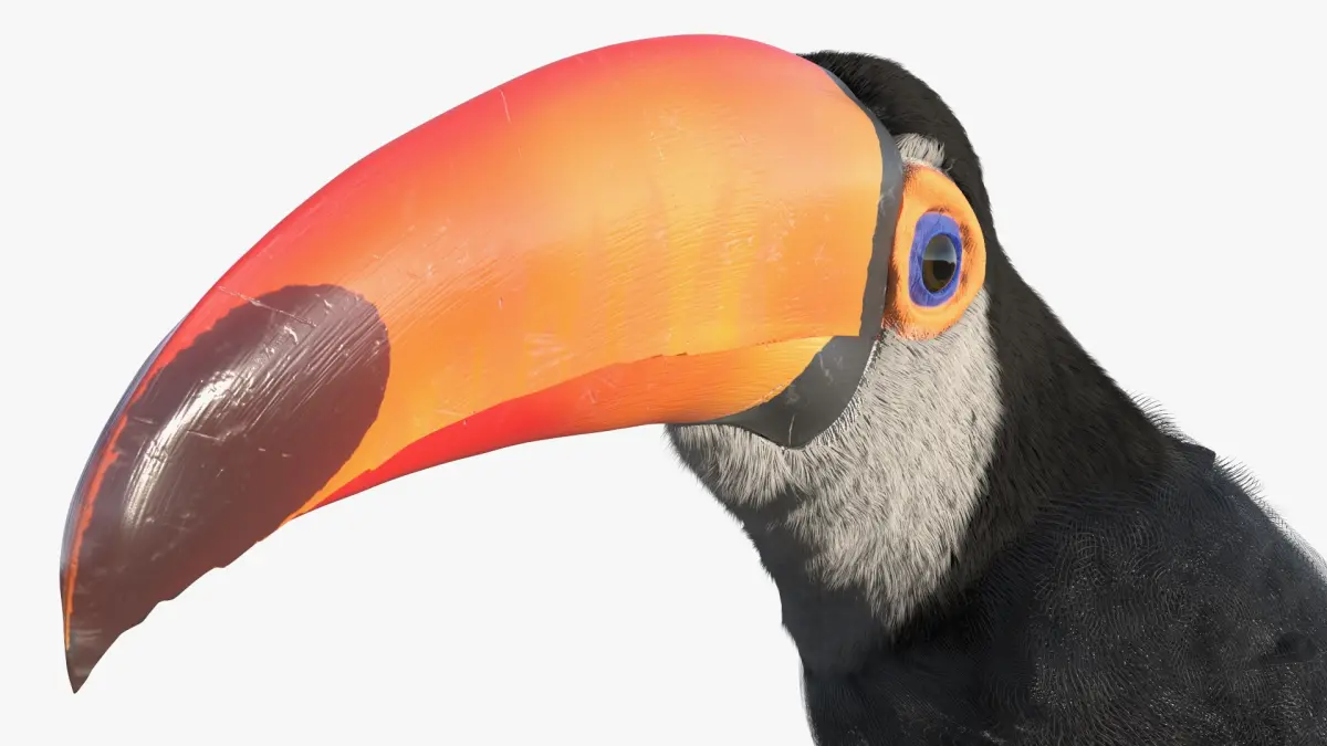 Toucan on Branch Fur is a three-dimensional model of Toco Toucan bird that is a Ramphastos toco (largest and most recognizable member of the toucan family).