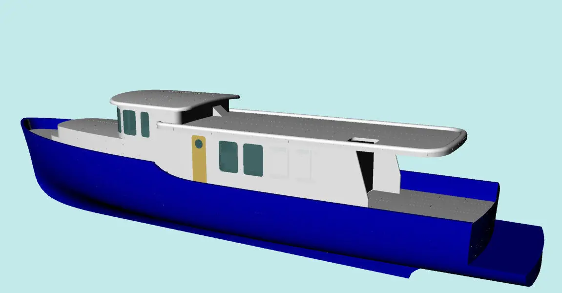 Tour Boatship model of an existing model. Model rhino prepared.dimensions;LOA= 19,45m.B= 4,4mD= 2,97m.