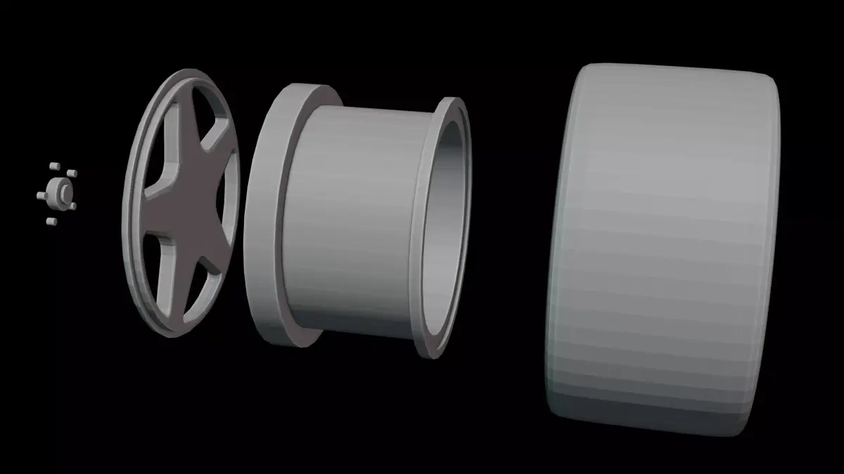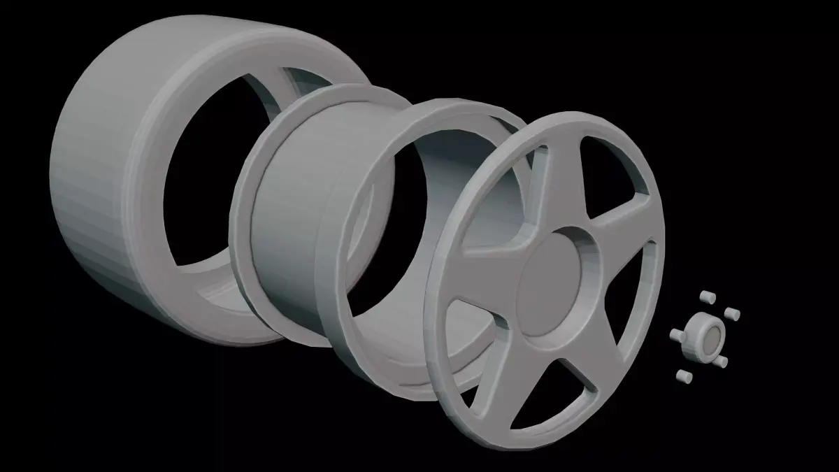 3D model descriptionThis 1/10 scale touring RC car wheel was modeled in Blender, inspired by the original design. The dimensions are 64 x 63.9 x 34.01 mm. Each part is designed to fit perfectly with one another, ensuring seamless assembly.