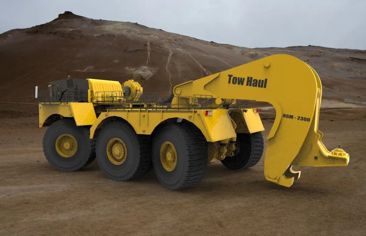A 3D model of a tow haul truck serves as a vital tool in the mining and construction industries, providing a detailed and realistic representation of this essential heavy-duty vehicle. Tow haul trucks are designed to transport large quantities of materials such as ore, coal, and overburden across rough terrains in mining sites. The 3D model showcases intricate details, including the robust chassis, large tires, powerful engine, and spacious dump body, allowing engineers and operators to visualize its functionality and optimize its design for efficiency and safety. By utilizing 3D models, companies can conduct thorough simulations, plan maintenance, and train operators effectively, ultimately enhancing the operational workflow and minimizing downtime in demanding work environments.