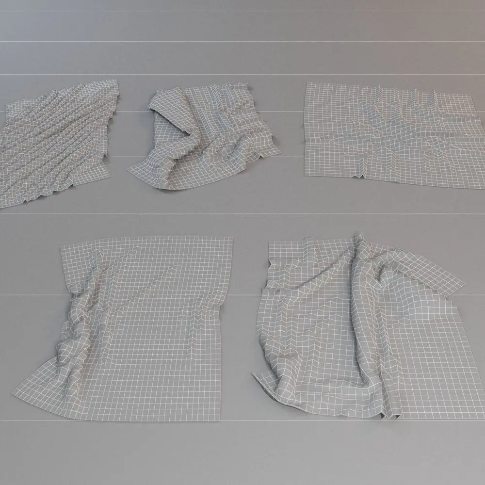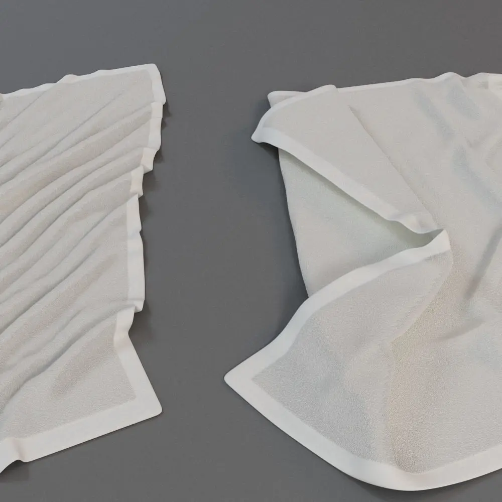 the 3dsmax version has a shell and turbosmooth modifier appliedthe stack is still available so you can go back to the very lowres versionOBJ and FBX are only available as lowres versions without thickness - add thickness and iterations in the 3d package of your choicethe previews are rendered with vray; the towels have vray materialsthe wireframe previews show the towels with 1 and 0 turbosmooth iterationsthe colored preview were rendered with 2 turbosmooth iterations (for closeups)the studio setup is included in the 3dsmax fileall maps are in the 3dsmax zipfilethe materials is a plain diffuse color with a bumpmapin the maps folder you can also find normal maps