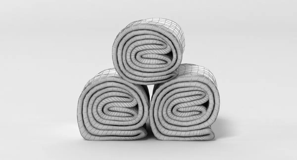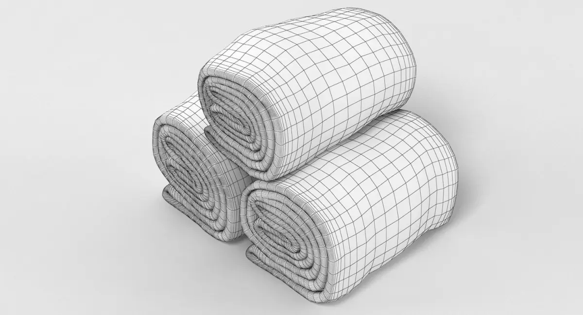 A DETAILED 3D MODEL OF TOWEL ROLLS;