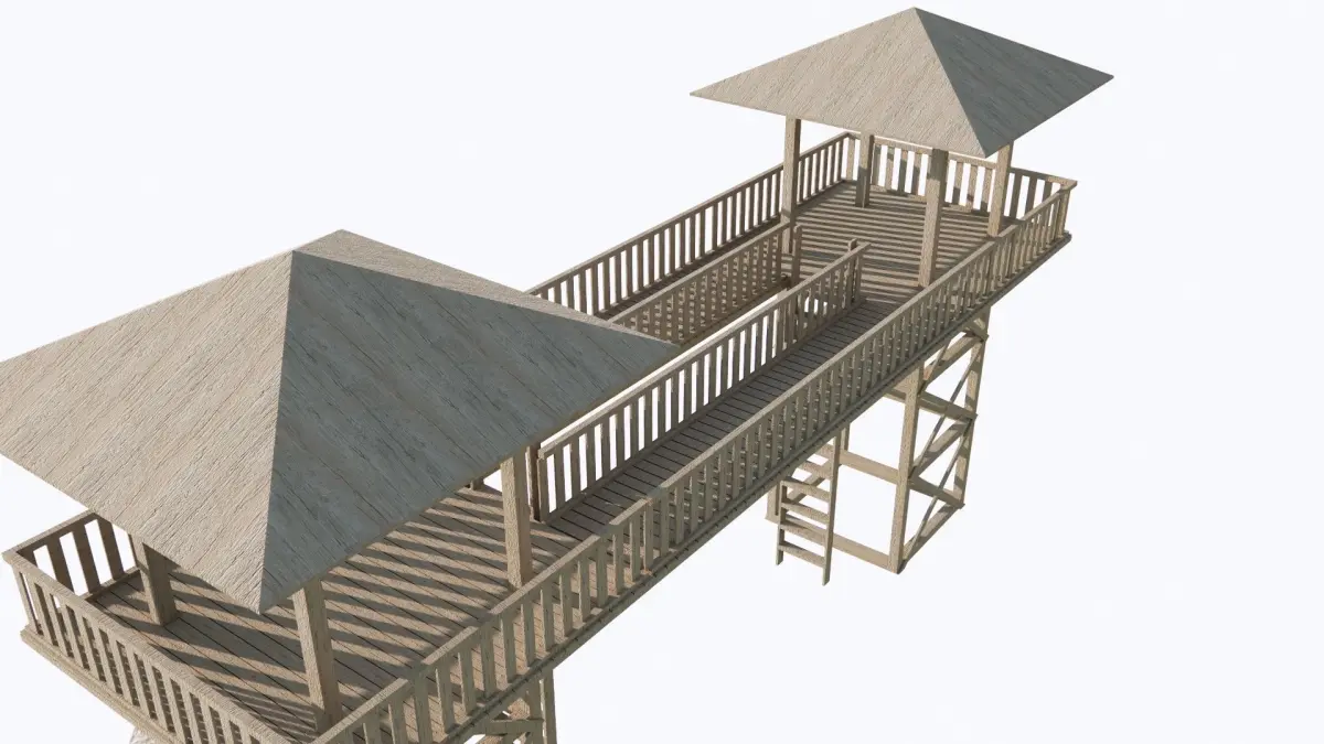 WATCHTOWER MODEL. IT WAS DESIGNED ESPECIALLY A STRUCTURE THAT CAN BE USED IN WAR GAMES AND MOVIES. IT IS OF WOOD MATERIAL AND IS 6 METERS HEIGHT. YOU CAN USE THIS MODEL IN YOUR PROJECT OR MOVIE STAGES YOU WANT. IMAGES AND VIDEO HAVE BEEN ADDED FOR EXAMPLE. REQUIRED FILE FORMATS HAVE BEEN UPLOADED. THANK YOU FOR YOUR INTEREST. PLEASE DON'T FORGET TO LIKE AND COMMENT.