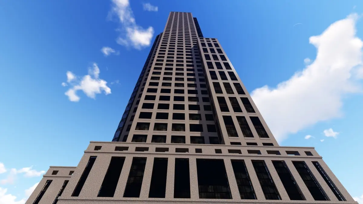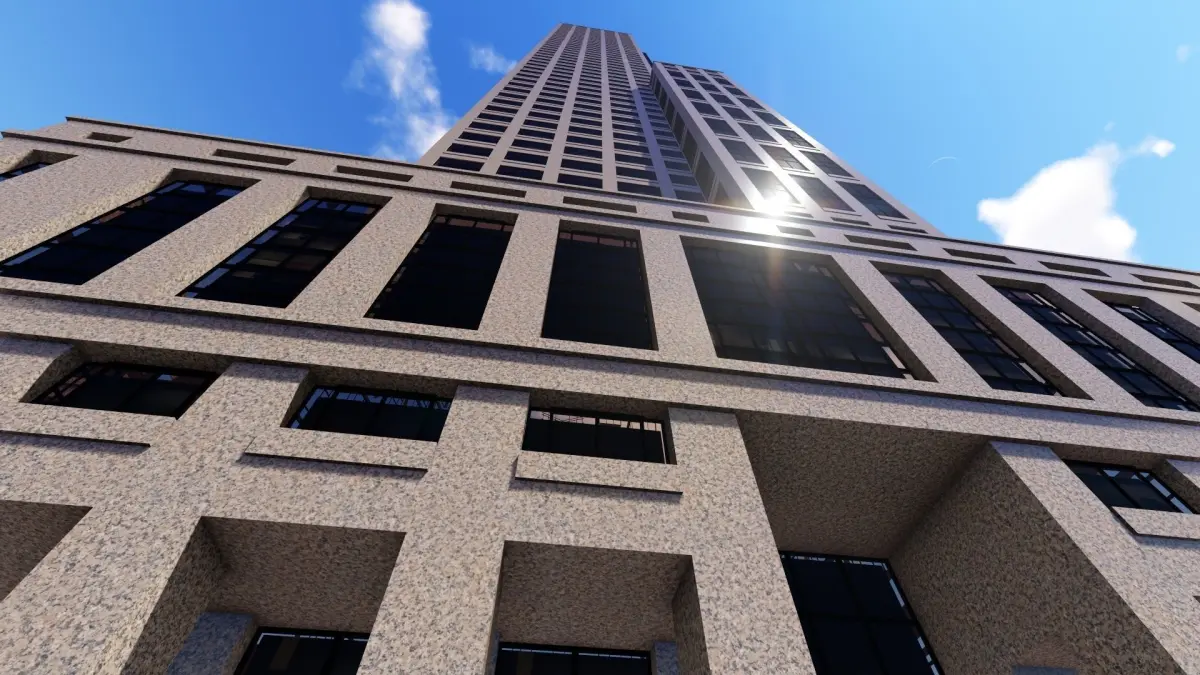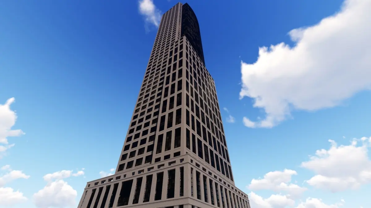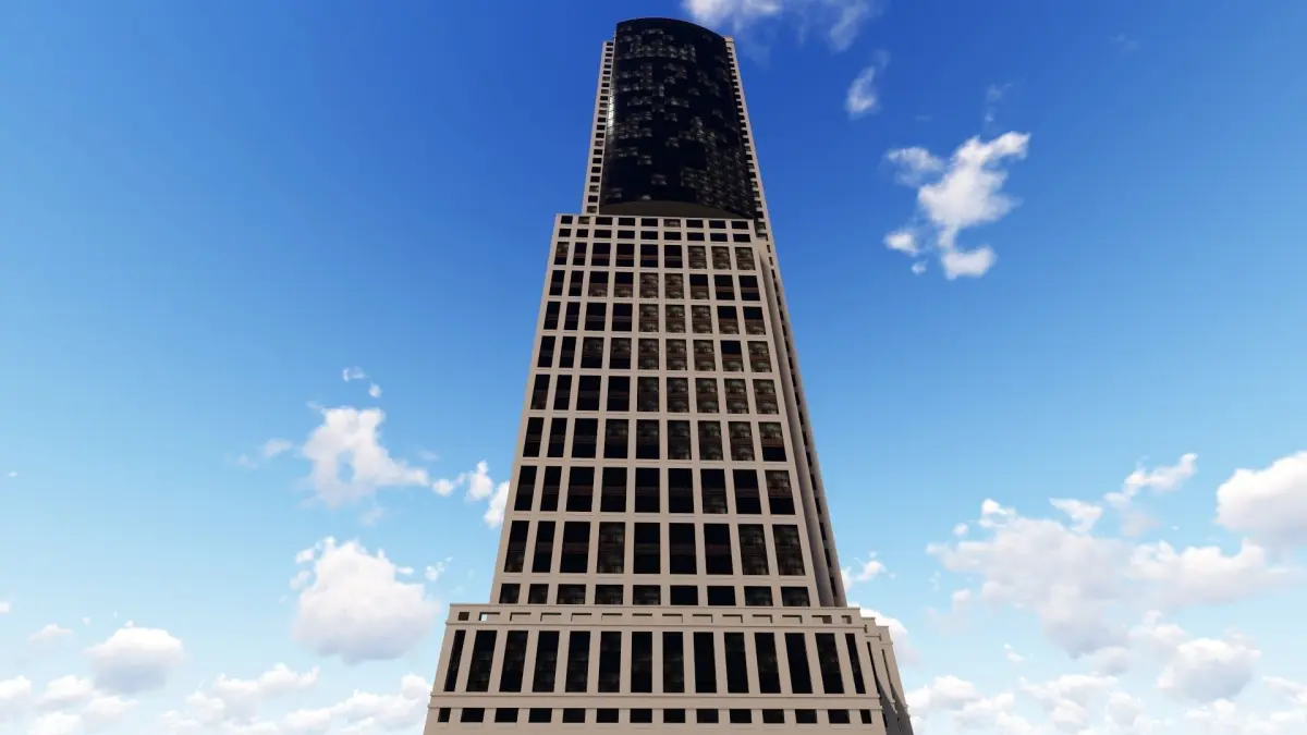 Tower - 5 tall building on field Low-poly 3D model