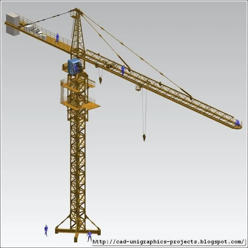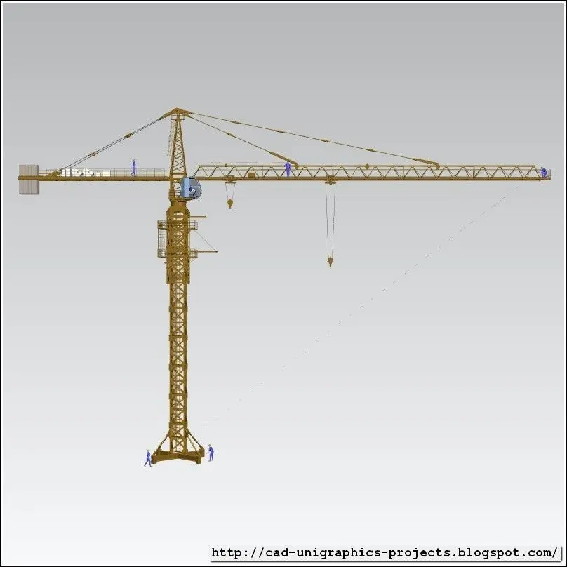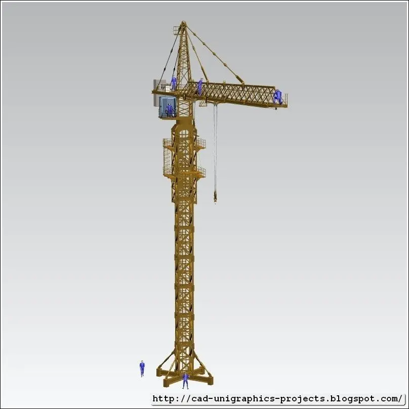 NOTE: Image of explode of assembly with part names on it is uploaded with assembly part.NOTE: In this design I didn't use real profile dimensions for steel beams, but in .prt files profile dimensions are editable in sketches.NOTE: Design is based ONLY on photos of tower cranes i found on internet so do not take it seriously.