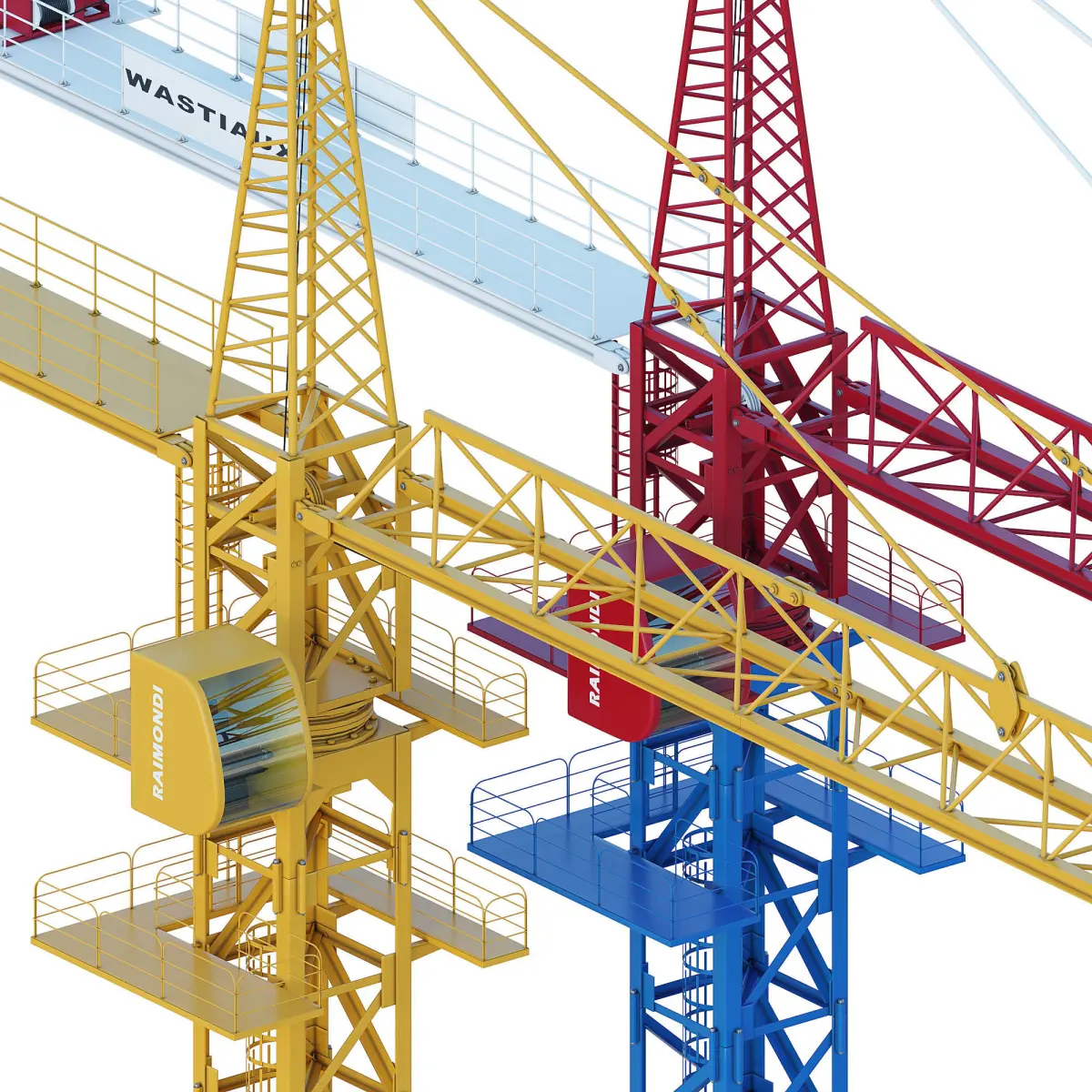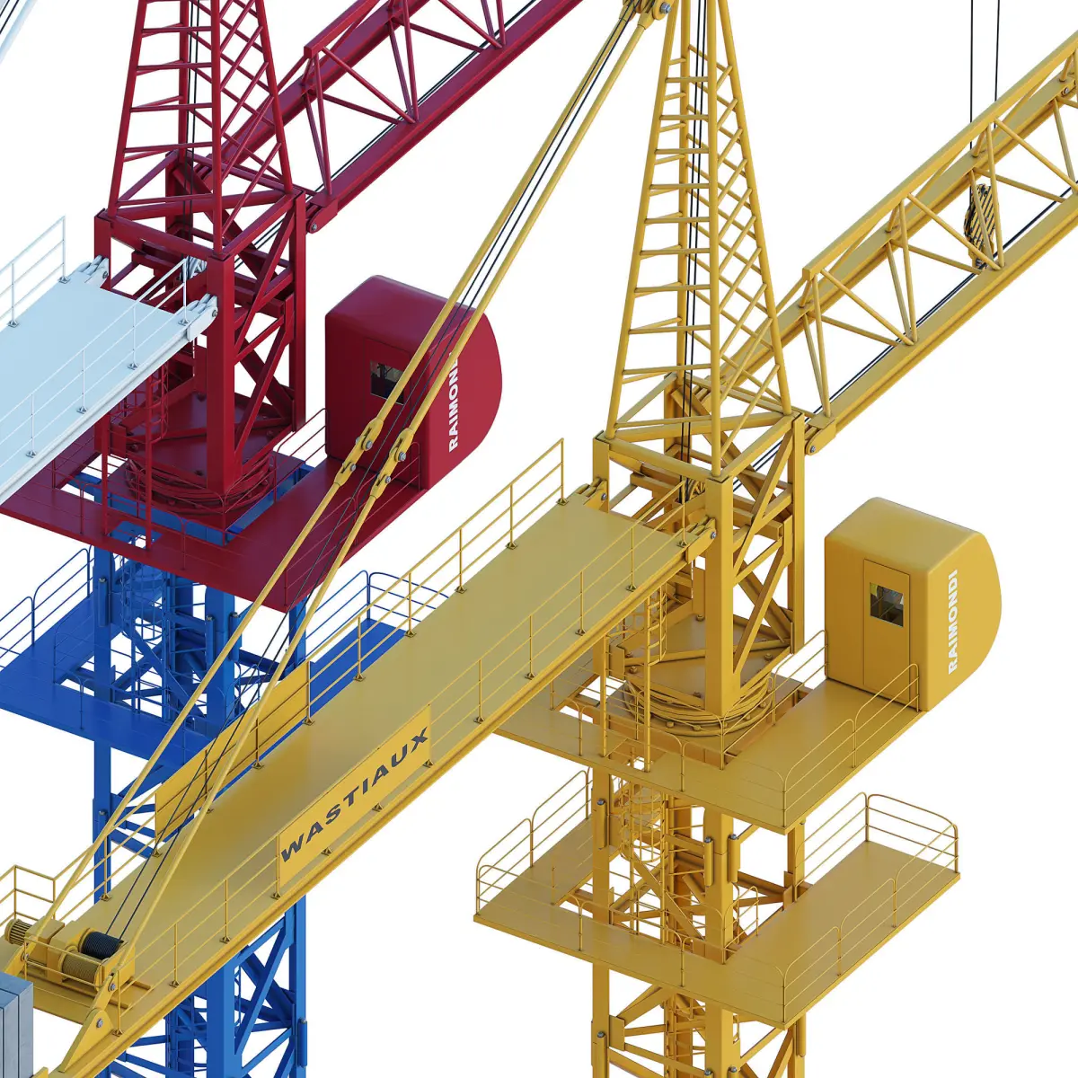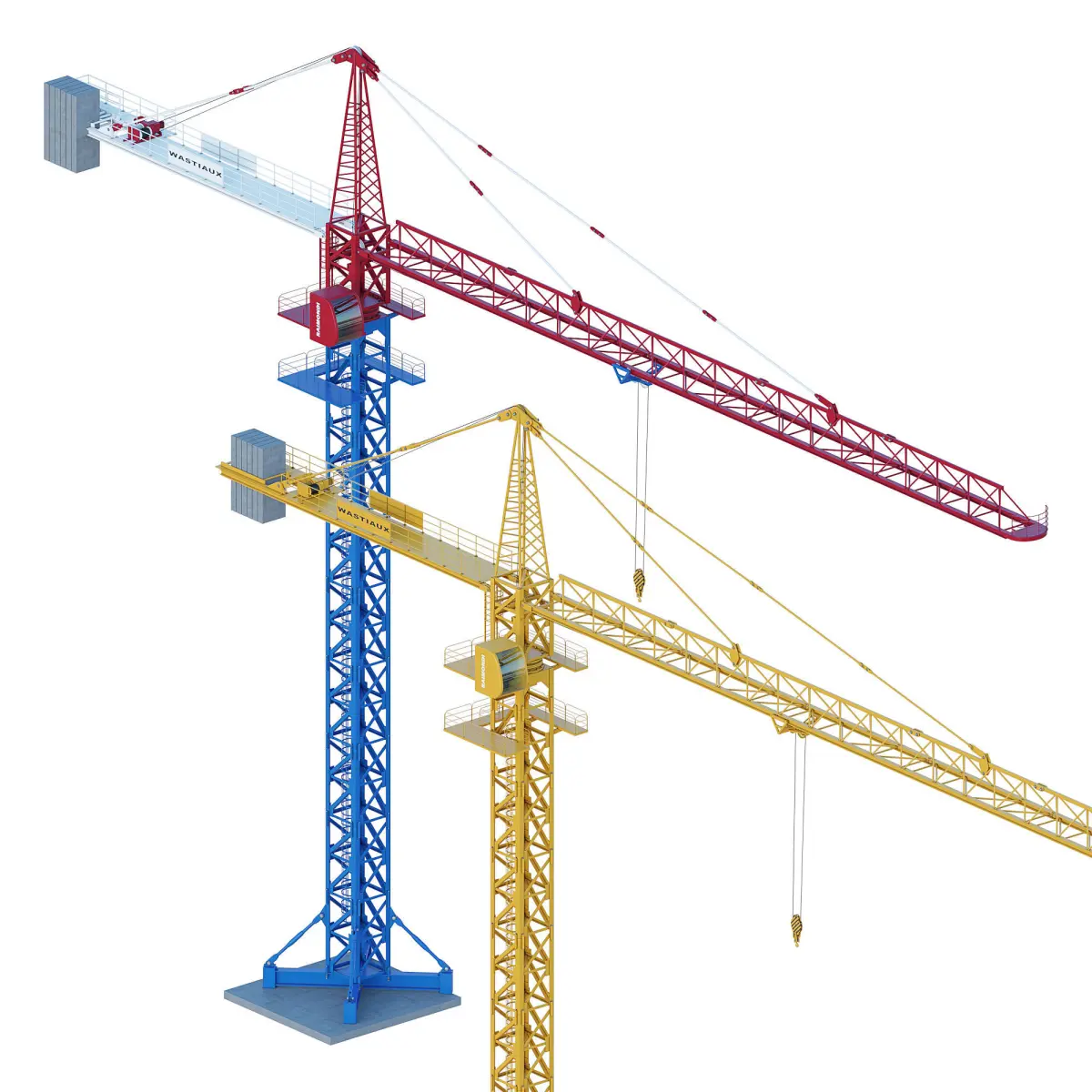 Tower crane yellow, blue.Introducing our sleek 3D masterpiece: the Crown Crane. Crafted with precision in 3D Max, this lifelike model is designed at a 1:1 scale, boasting two stylish color options.