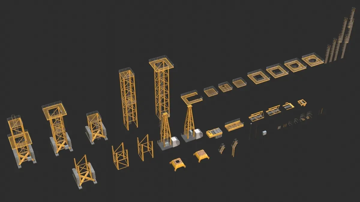 This modular kit of construction tower crane including 4 LODs for each parts and prefabs. This 3D modular kit includes 32 individual elements and 9 prefab structures. Also, this pack includes 2 tower cranes made from individuals and ready to upload in you scene.