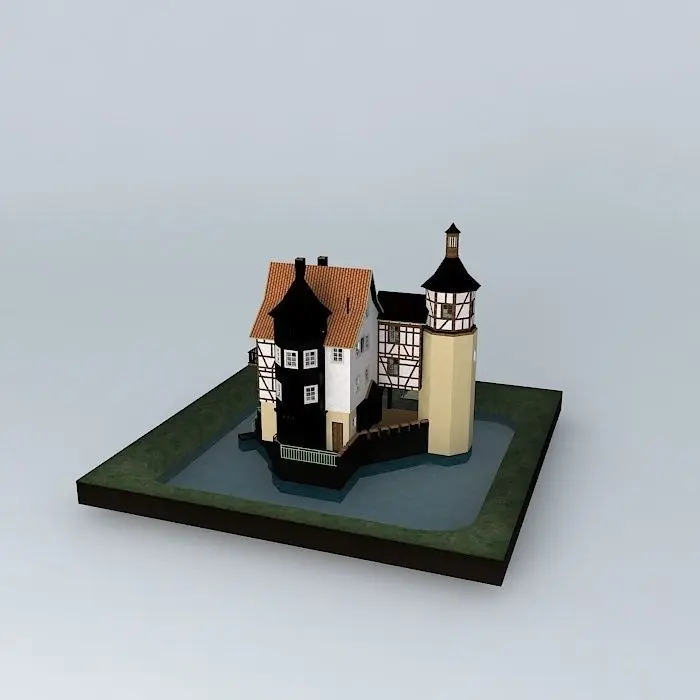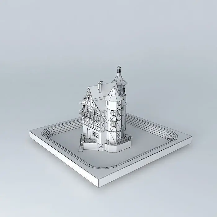 This 3D model was originally created with Sketchup 8 and then converted to all other 3D formats. Native format is .skp 3dsmax scene is 3ds Max 2016 version, rendered with Vray 3.00 This is a tall European Style house. I wish to thank my friend, Bob1938 for constructing the exterior. I designed its interior. The moat, drawbridge, and every window placement remains original to him, I changed nothing about the exterior. The area on the ground floor is open space, feel free to do anything with it. The front door is in the tower in which you are greeted by a wooden staircase that takes you up to the rooms. In the reception hall is where you'd put your piano if you ownwed one. The living room has a fire place. the other chimney flue is the furnace flue. Wainscotting in the dining room. The kitchen has a place in front for your breakfast table. The house has 3 bedrooms and 2.5 bathrooms. The rooms upstairs are linked by a long, winding corridor. I've included the trunk room in the roof of this house. The house is on layers so you may look around. Enjoy and please rate.