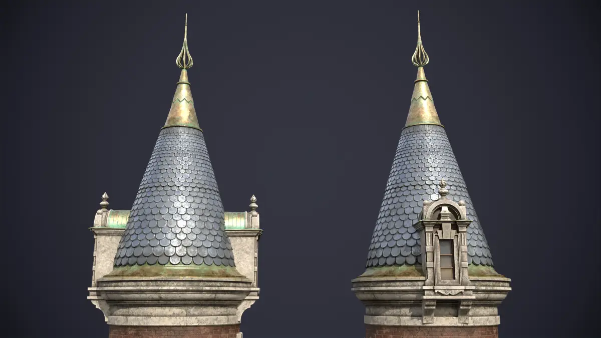 The tower of the palace on the rock is made in the Chateauesque style and the style of Louis XIII