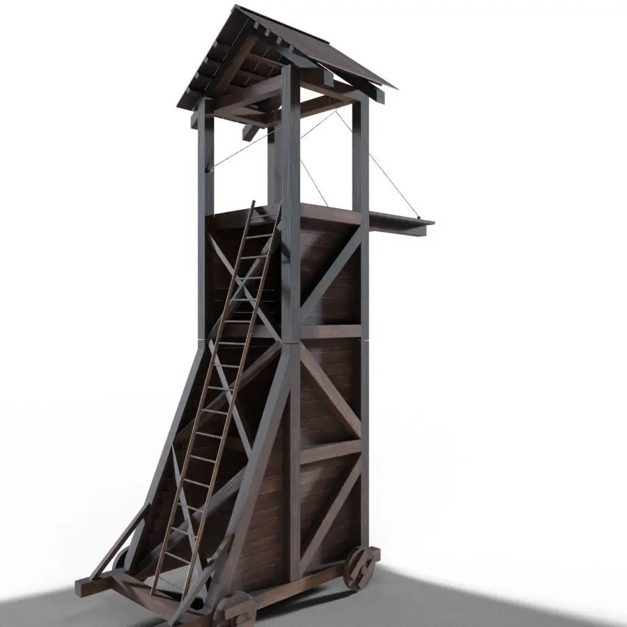 Military Tower Siege Medieval, with PBR material and good topology,
