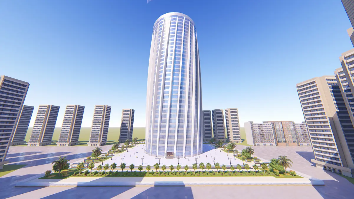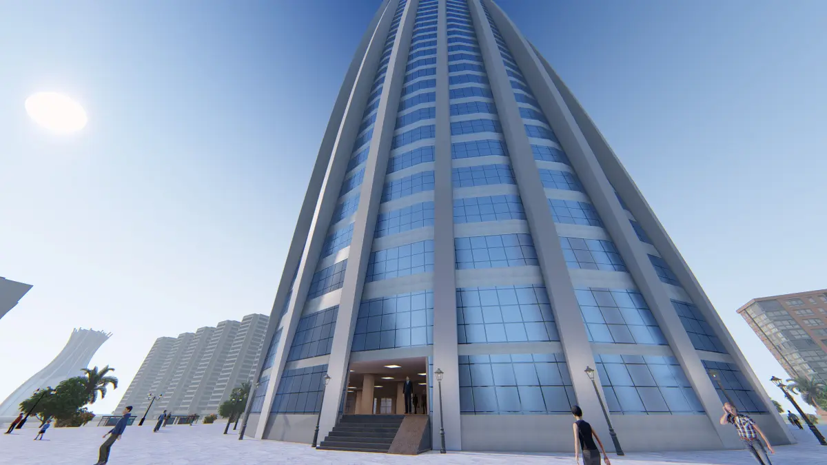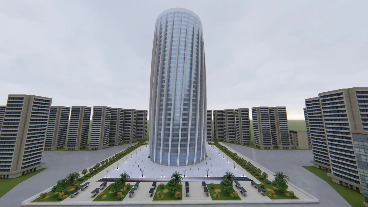 Tower tall building in middle of grassy area Low-poly 3D model