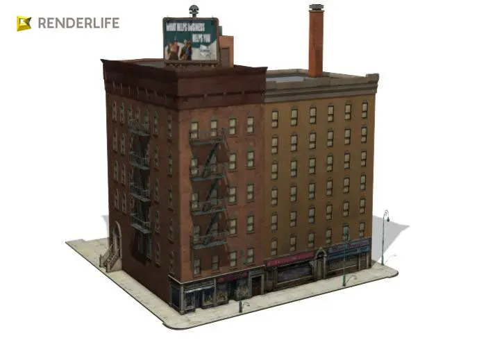 This is a stylized 3D model of a pair of old fashioned apartment blocks. These are similar to the type of housing one can still see in places like Brooklyn, The Bronx, and Montreal. They feature storefronts at ground level. Though the style of some of the signage may need to be updated, they would be great in New York City street scenes. These exterior-only assets are for mid and background use.