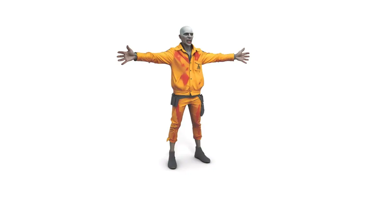 This model depicts a toxic industrial slum zombie with detailed features such as chemical burns and glossy sores, perfect for horror-themed environments. Each model has 3 levels of detail with QUAD polygons: