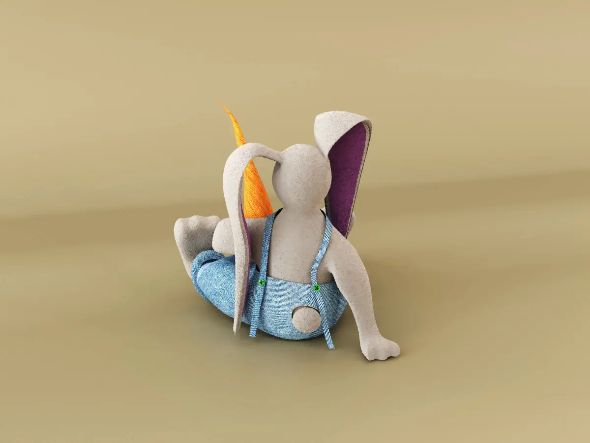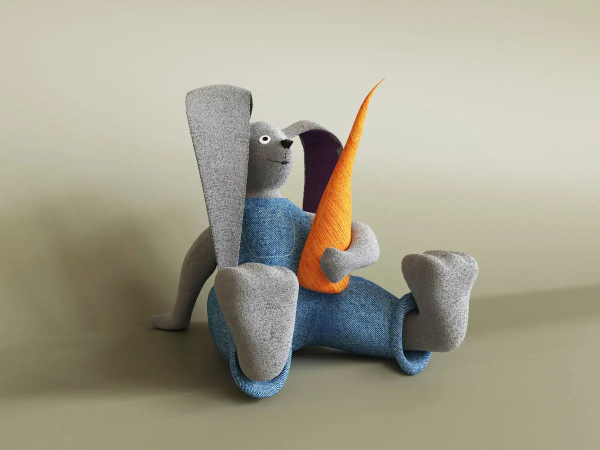 High-quality photorealistic fabric bunny with a decorative carrot.