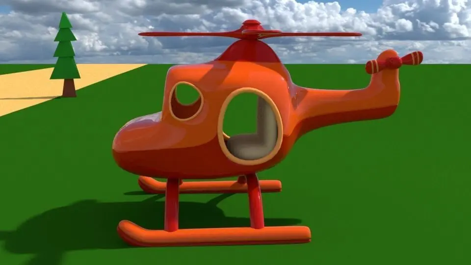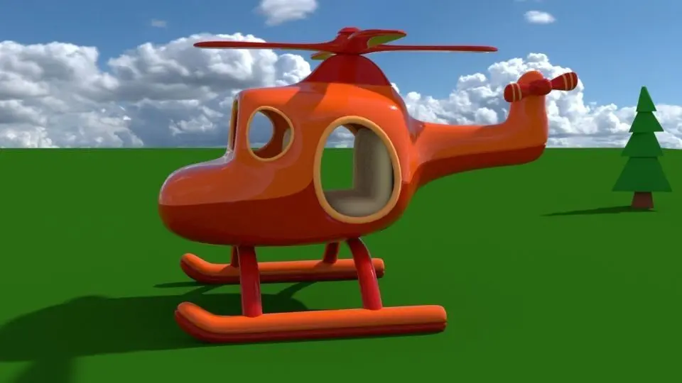A toy helicopter with moving propellor blades. Great for kids animations or toy projects.