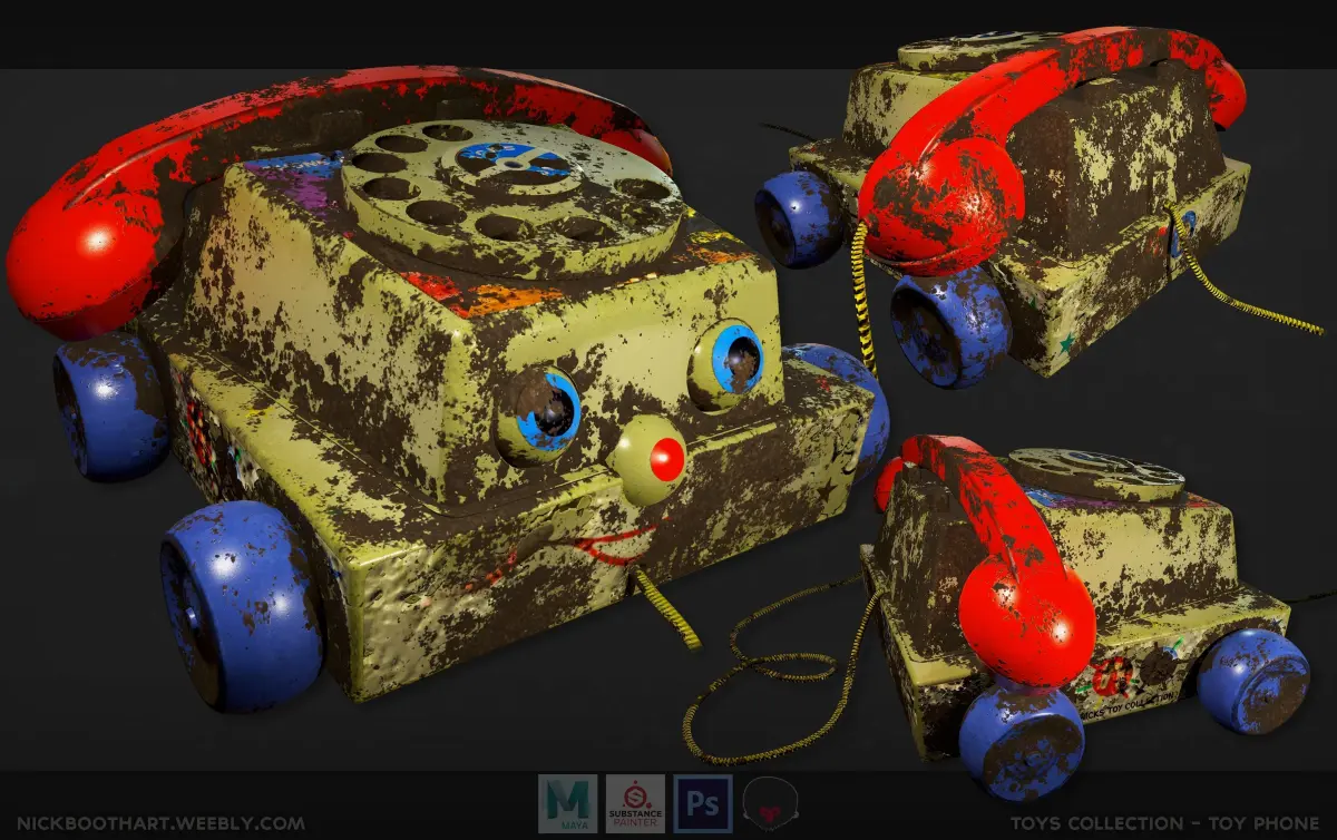A Toy Phone 3D model that comes with an alternate worn texture set.