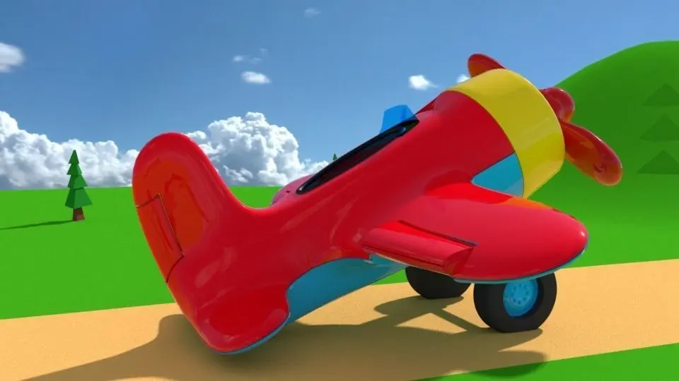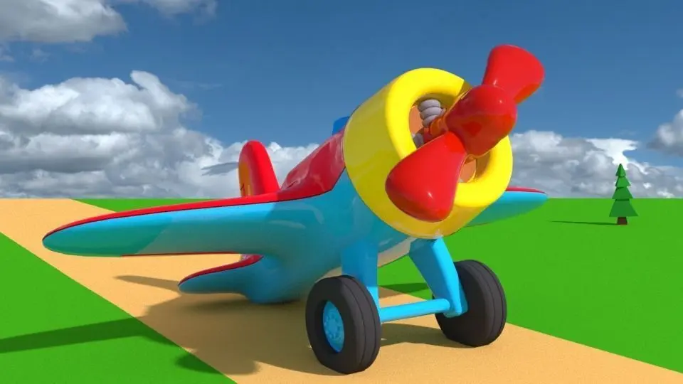 Sore into the sky with this toy plane. Complete with spinning propellor, it also includes movable wing flaps and tail flaps and spinning wheels.. Great for kids animations or projects.