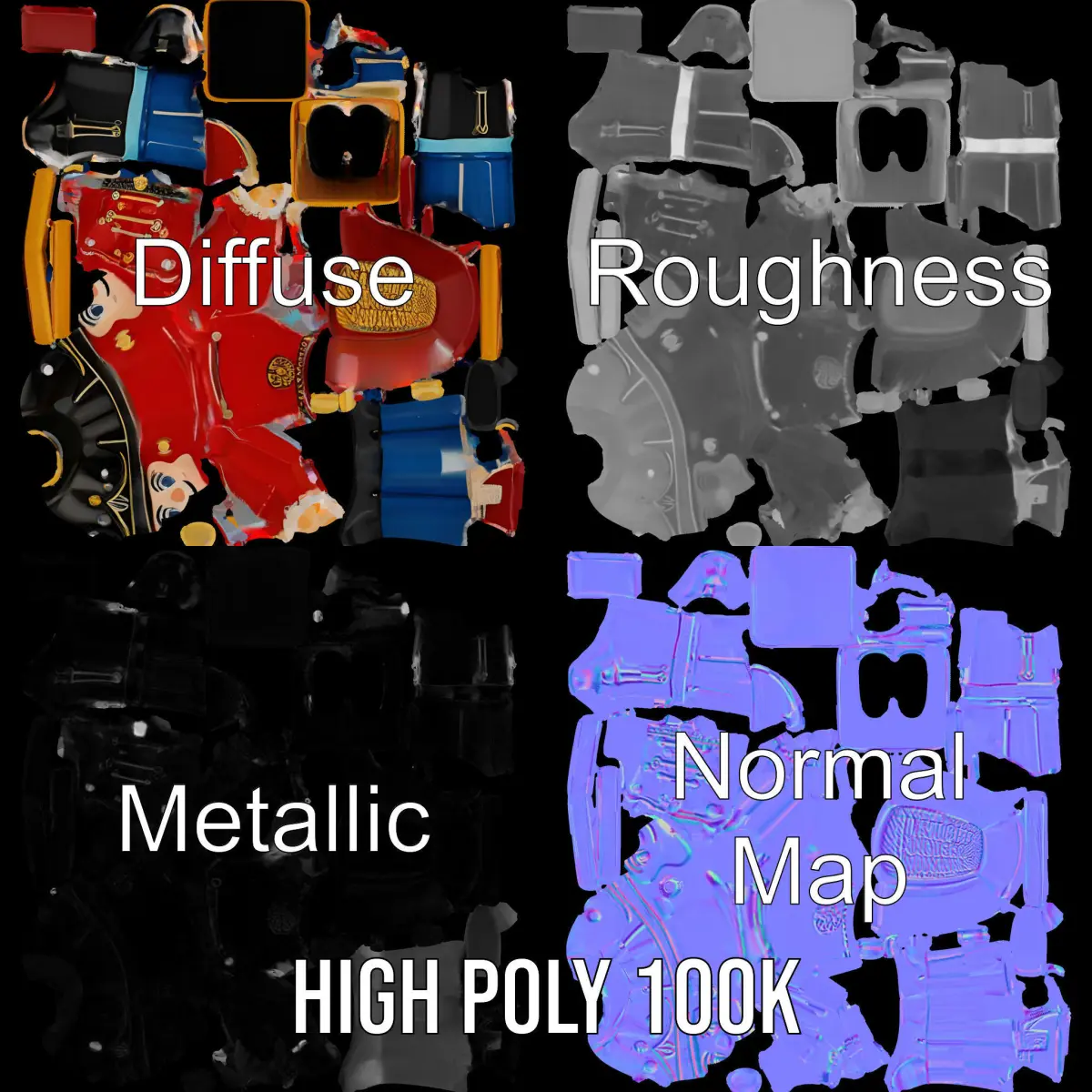 This Toy Soldier Nutcracker Model Pack comes with three levels of detail: low-poly for mobile, middle-poly for environment, and high-poly for production rendering. Ideal for use in animations, games, or interactive presentations, its PBR textures include Diffuse, NormalMap, and reflection/roughness/metallic, sized at 4096*4096. Suitable for engines like Unity and Unreal, each model is accurately unwrapped with no overlapping UVs. Enjoy detailed and colorful aesthetics perfect for holiday scenes or themed projects. Please like and comment on the model if you appreciate the quality. The first image is the reference used for creating the 3D model. It is important to carefully evaluate the quality of the model by examining the preview images that display the topology and polygonal mesh. These previews (WIRE and WEB 3D Preview) clearly demonstrate how accurately the model matches the original reference and how well the geometry has been executed.