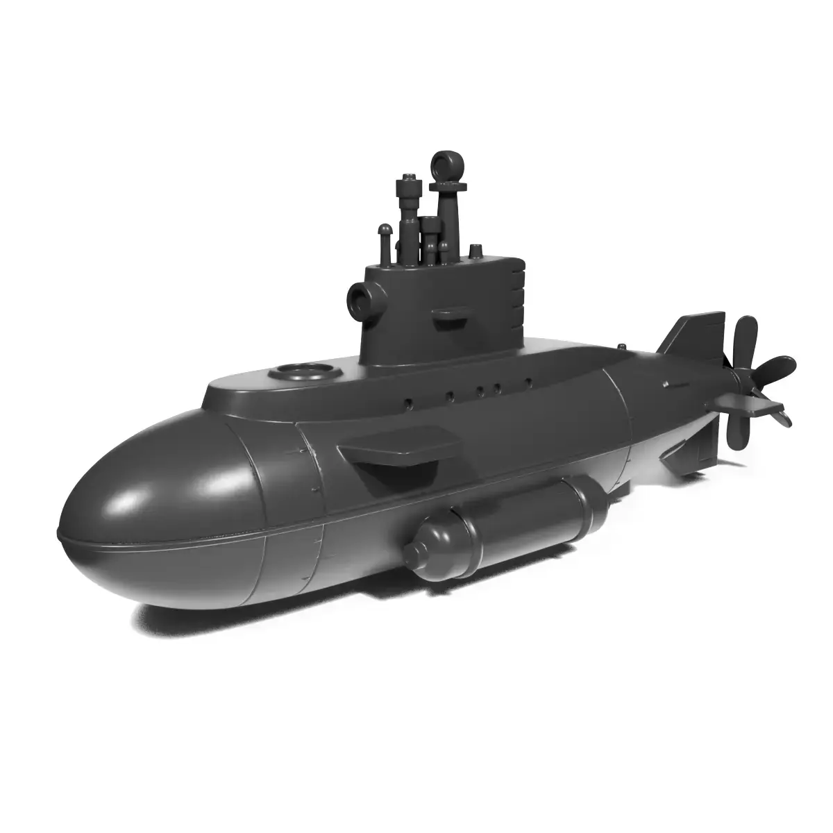 This 3D printed toy submarine is designed with a sleek, modern look, aimed at capturing the imagination of underwater adventure enthusiasts. The detailed features on the model mimic that of real submarines, providing a mix of realism and playfulness.