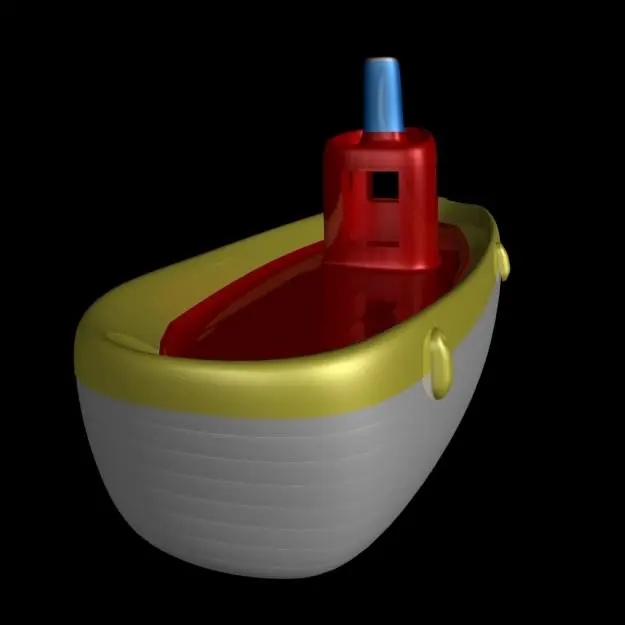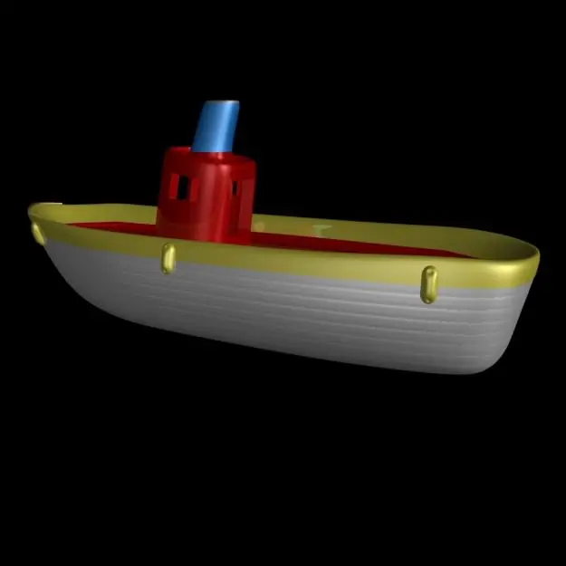A toy tugboat model in bright, cheerful plastic material and textures, carefully made with key parts separate in the same manner as the real life counterpart manufacture (can be exploded). Parts are easily combined into a single object. Modeled in quads, polygon count can be easily increased thru subdivision or hyperNURBS. This model was featured in an animation at Siggraph.
