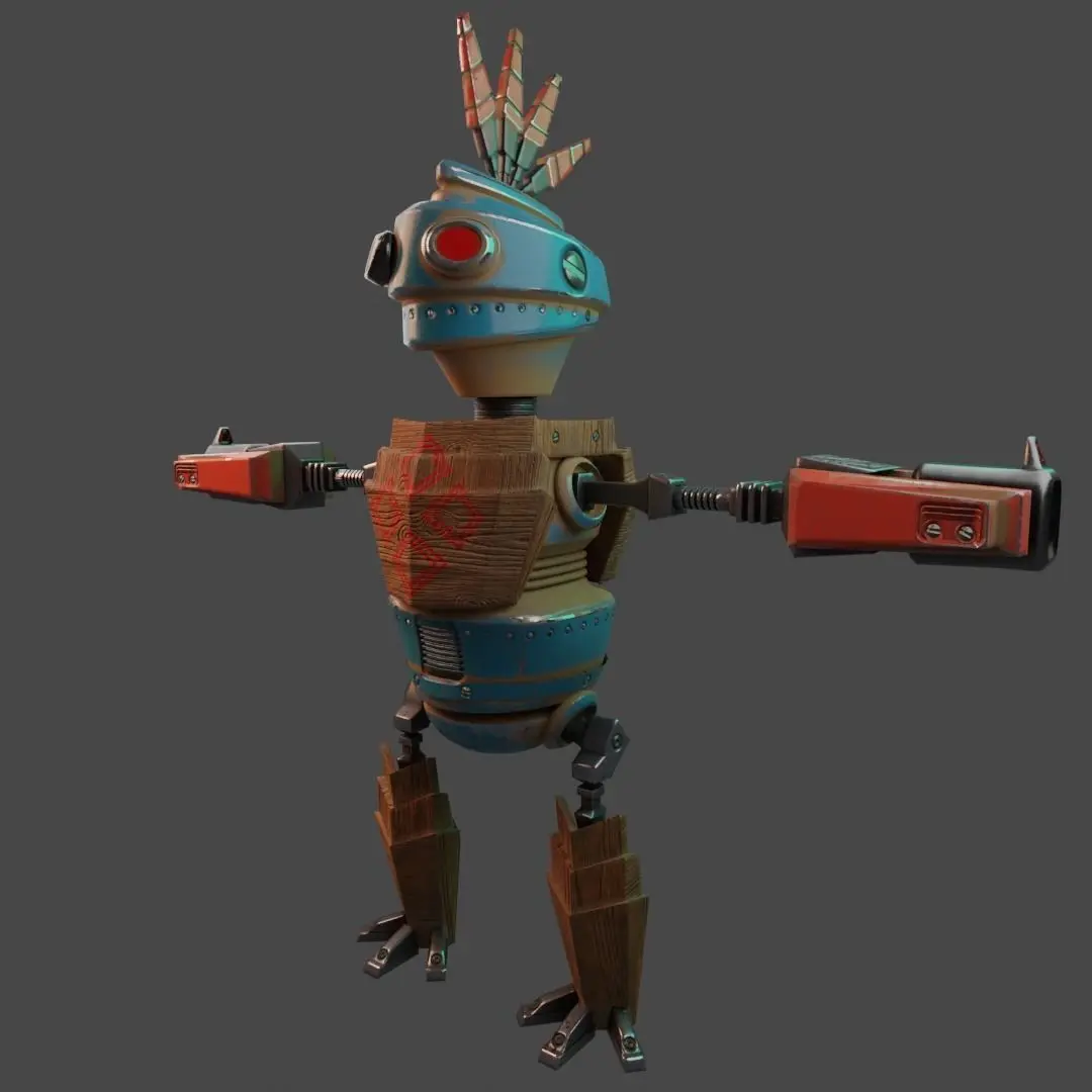 low-poly game ready 3d model. Rigged and animated toybot character.