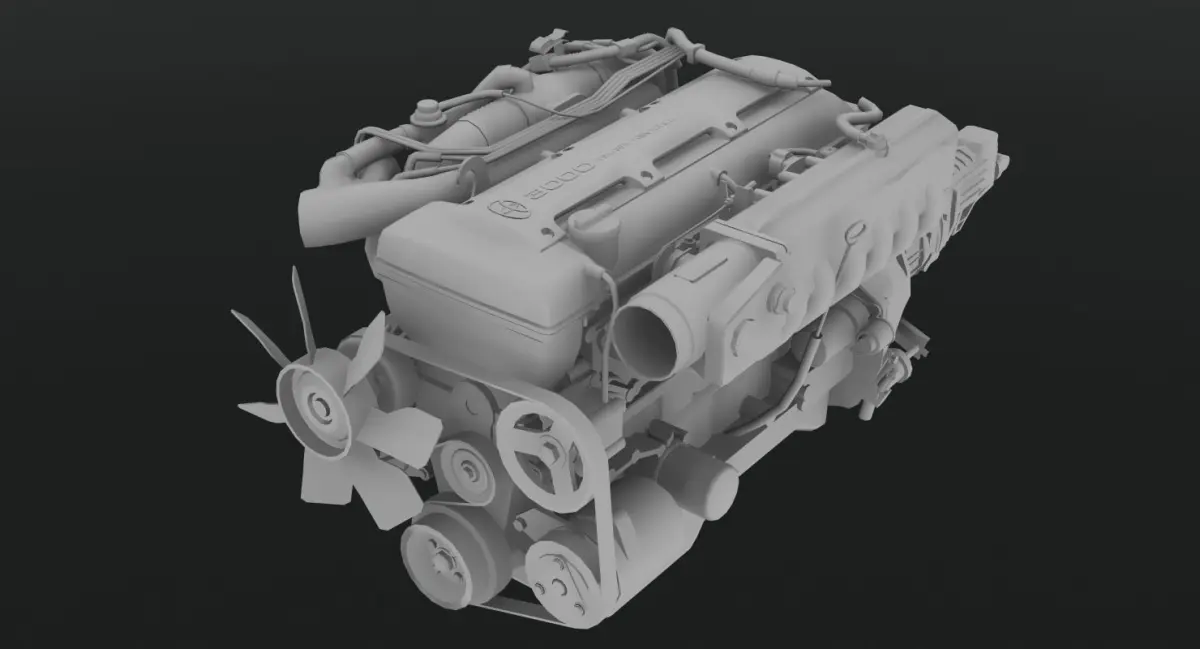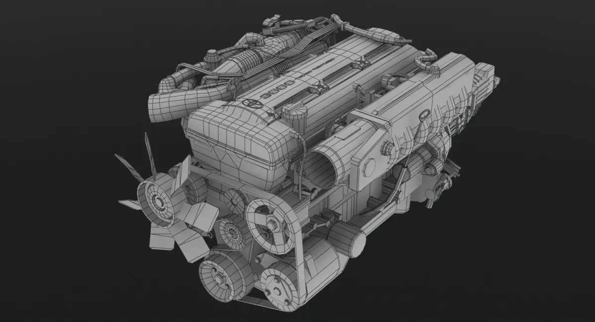 75 parts in total.Perfect texture mapping.Features RWD transmission, cardan shaft, differential and cooling accessories.Game Ready.