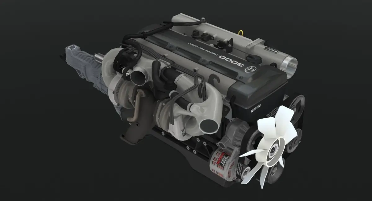Contains all parts of the complete Toyota 2JZ GTE 3.0L twin turbo engine.High Detailed and realistic 3d model.