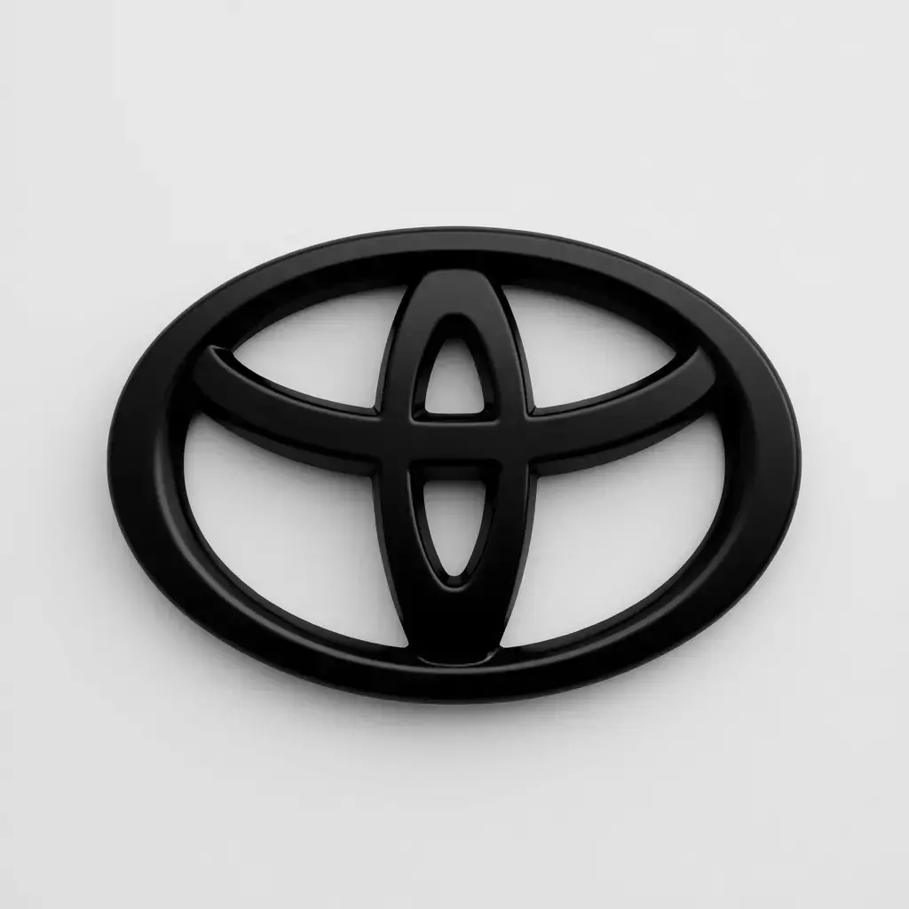 This 3D model is a clean and accurate representation of the modern Toyota logo, presented in a sleek matte black finish. The design consists of three ovals intertwined to form a symmetrical and dynamic emblem. The outer oval represents the world, the two inner ovals represent the customer and the company, and their intersection symbolizes the relationship of trust and a promise for the future. The matte black finish gives the logo a premium and contemporary feel, making it an excellent asset for automotive visualizations, branding projects, car customization renders, or any graphic design requiring a high-quality, detailed brand symbol.