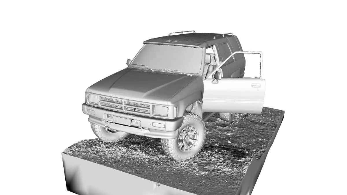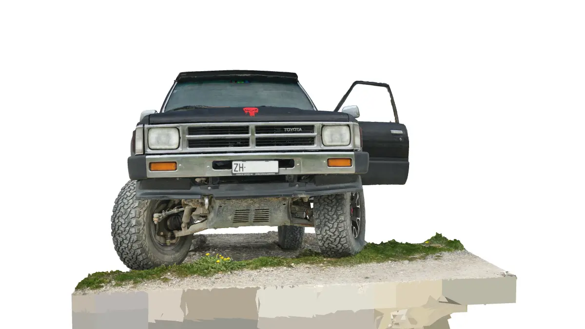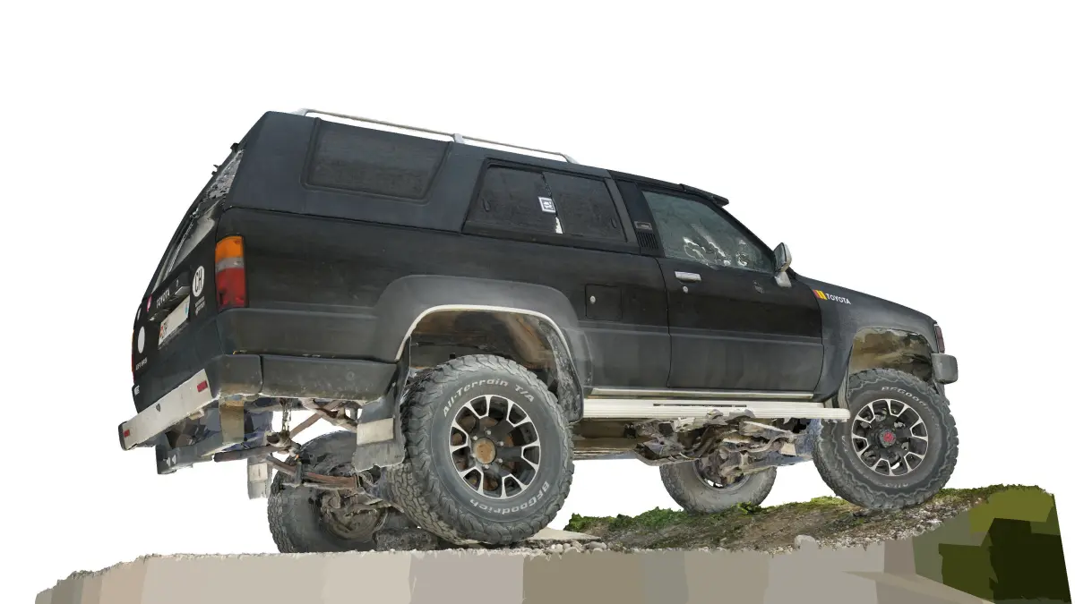 A photogrammetry model of my beloved 1988 Toyota 4Runner 1st gen. This model is created from 1600 Photos taken with a dji mini 3 pro and a Sony Alpha 7 IV and processed in Realitycapture.It had been quite difficult to capture all Angles without changing the scene and link Interiour with the outside as well the underview. As the car is assembled and in duty some parts are impossible to capture, but a disassembled model is planned for the future.