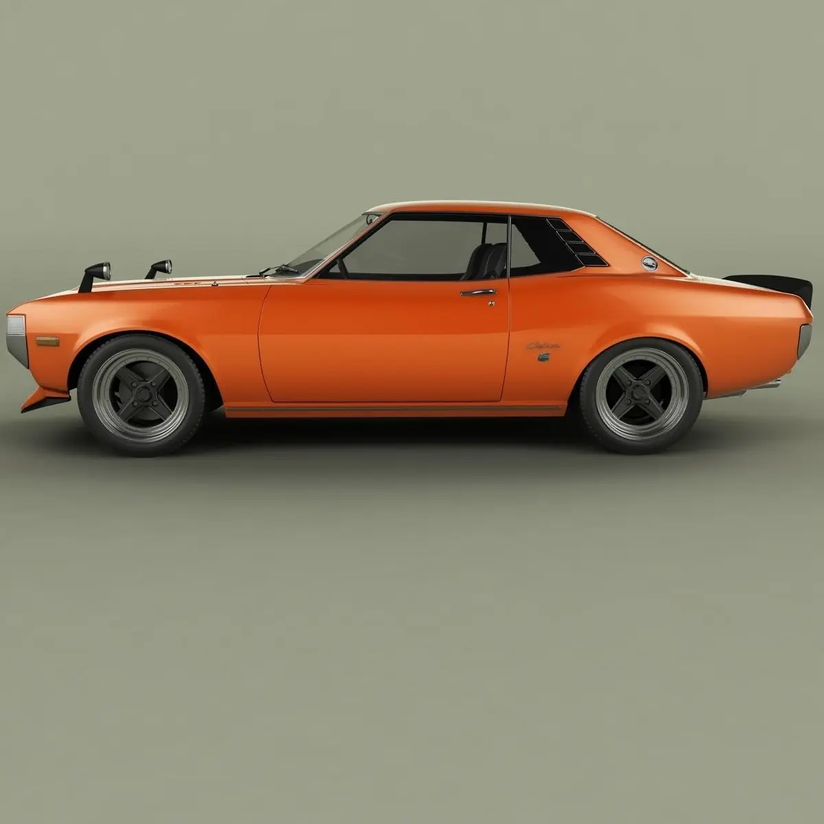 High detailed, correctly scaled model of 1976 Toyota Celica TA23/RA23 Coupe. Originally created with 3ds Max 8. Rendered with V-Ray, files with standard materials are included. Unit system is set to metric units. Model is built to real-world scale. Geometry is Editable Poly (quads/tris only). TurboSmooth is use separately to objects (89 of 145 named objects) with iterations 2 (1235340 polys, 648867 vert.) Each file was checked before upload. Materials and textures are included (6 textures - jpg 1024X1024).