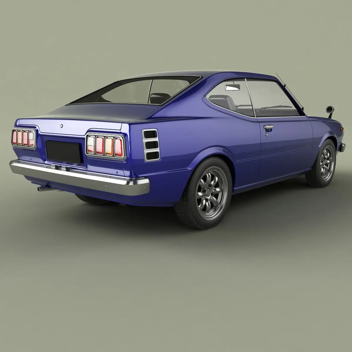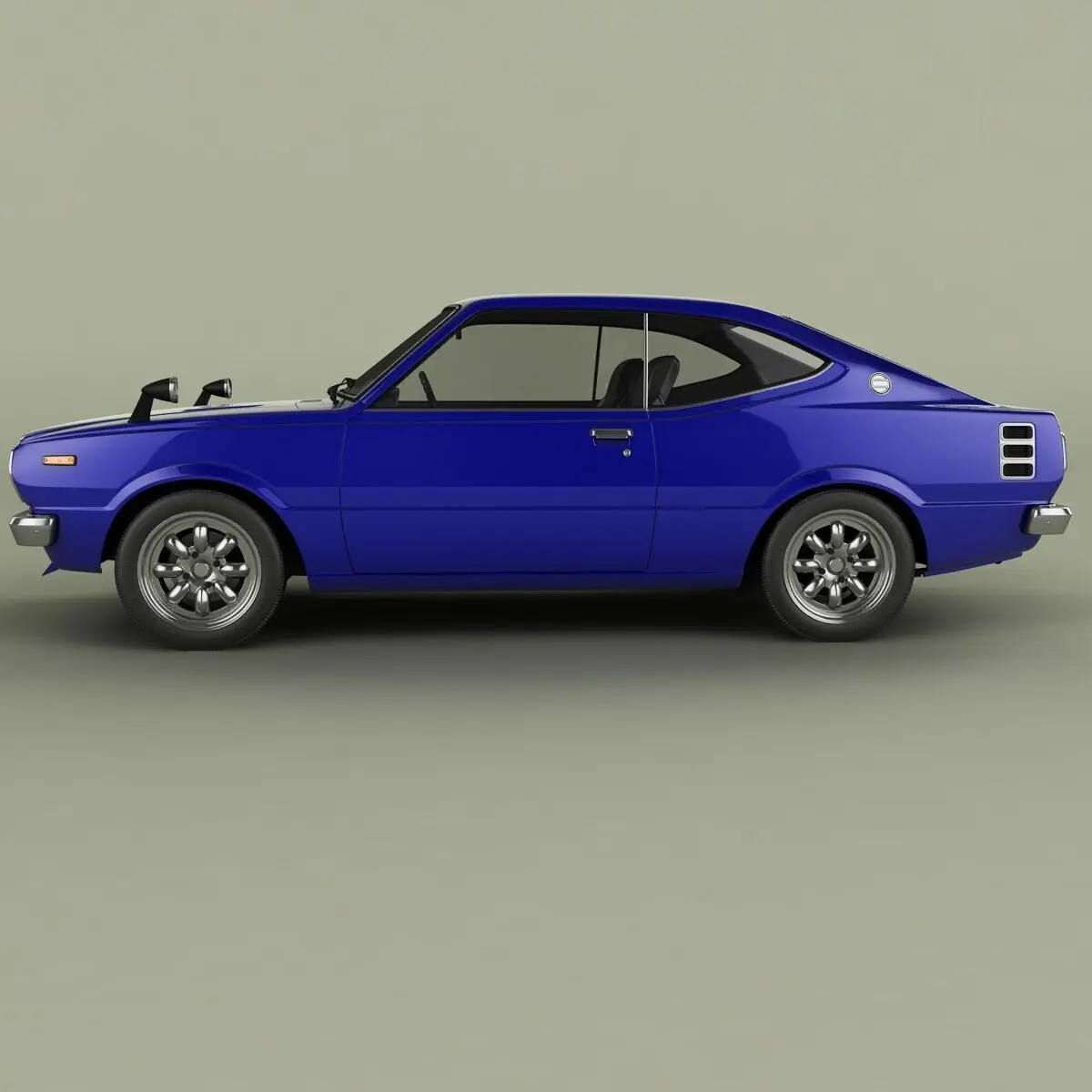 High detailed, correctly scaled model of 1975 Toyota Corolla Levin coupe TE37. Originally created with 3ds Max 8. Rendered with V-Ray, files with standard materials are included. Unit system is set to metric units. Model is built to real-world scale. Geometry is Editable Poly (quads/tris only). TurboSmooth is use separately to objects (89 of 148 named objects) with iterations 2 ( 1018297 polys, 550332 vert.) Each file was checked before upload. Materials and textures are included (6 textures - jpg 1024X1024).