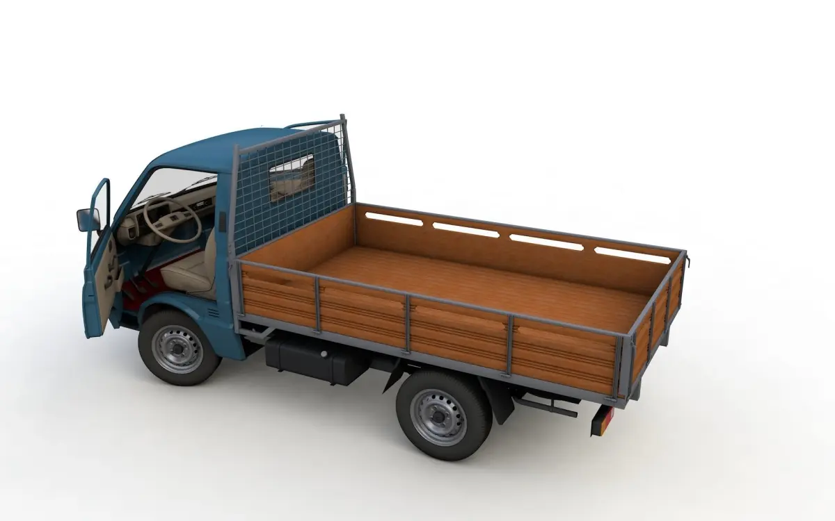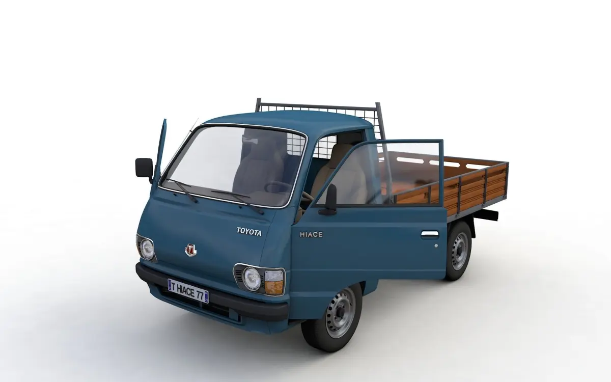 High detailed 3D model TOYOTA HIACE PICKUP TRUCK 1977 wood box, from inside and outside.