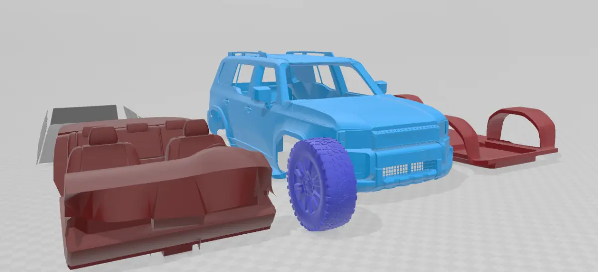 This STL model provides a detailed and accurate scale replica of the 2024 Toyota Land Cruiser 250 First Edition. Each piece is designed separately for easy printing and assembly, making it perfect for car enthusiasts, collectors, and those looking to explore this iconic off-road model in miniature.