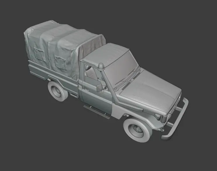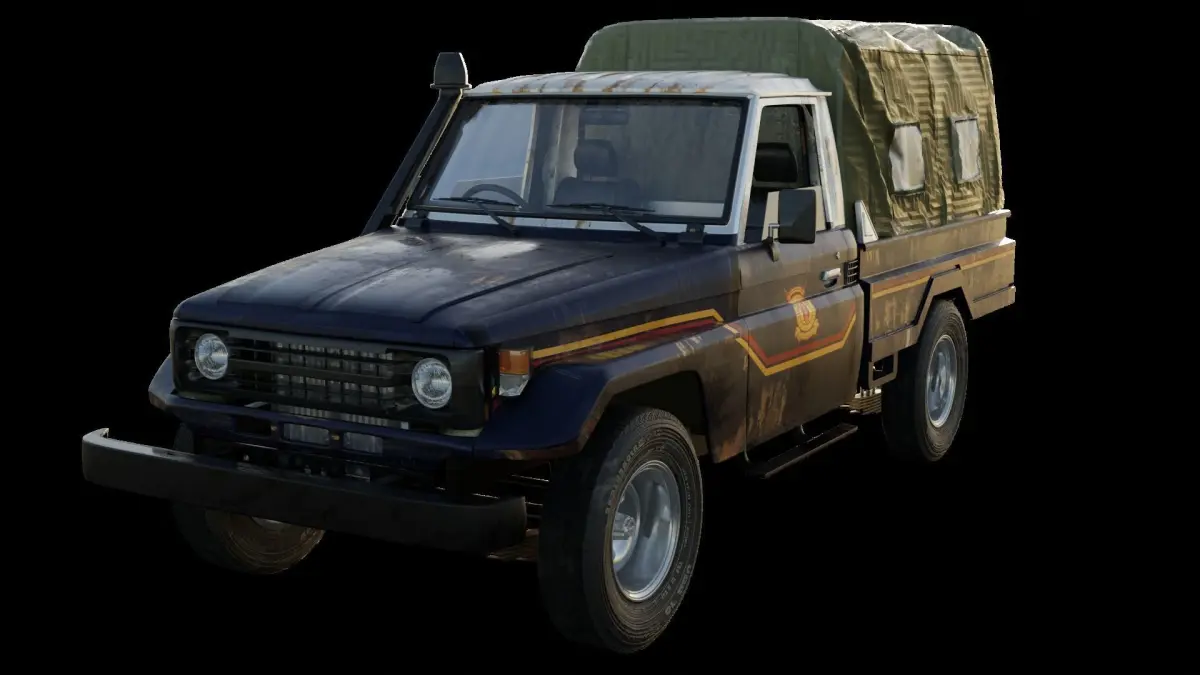 This is a high poly, highly detailed model of a modified Toyota Land Cruiser Type 1 for use by the Kenya police. Aged up with some rust and mud.