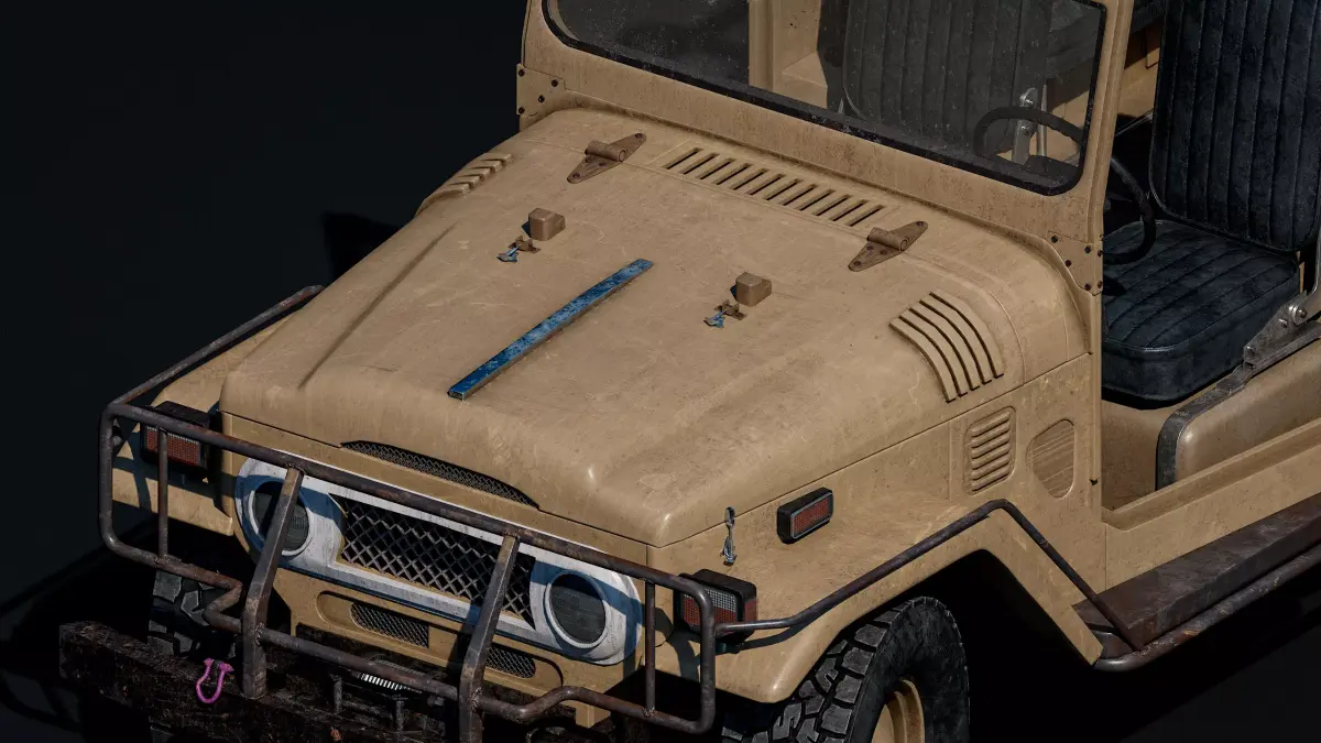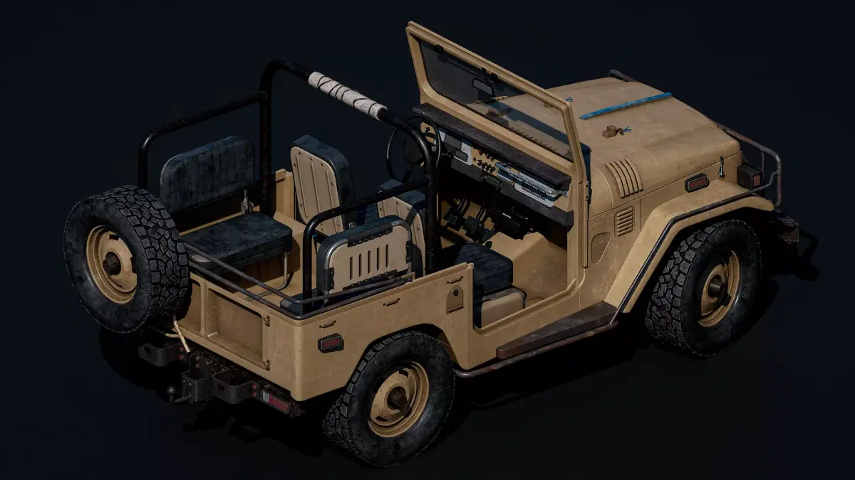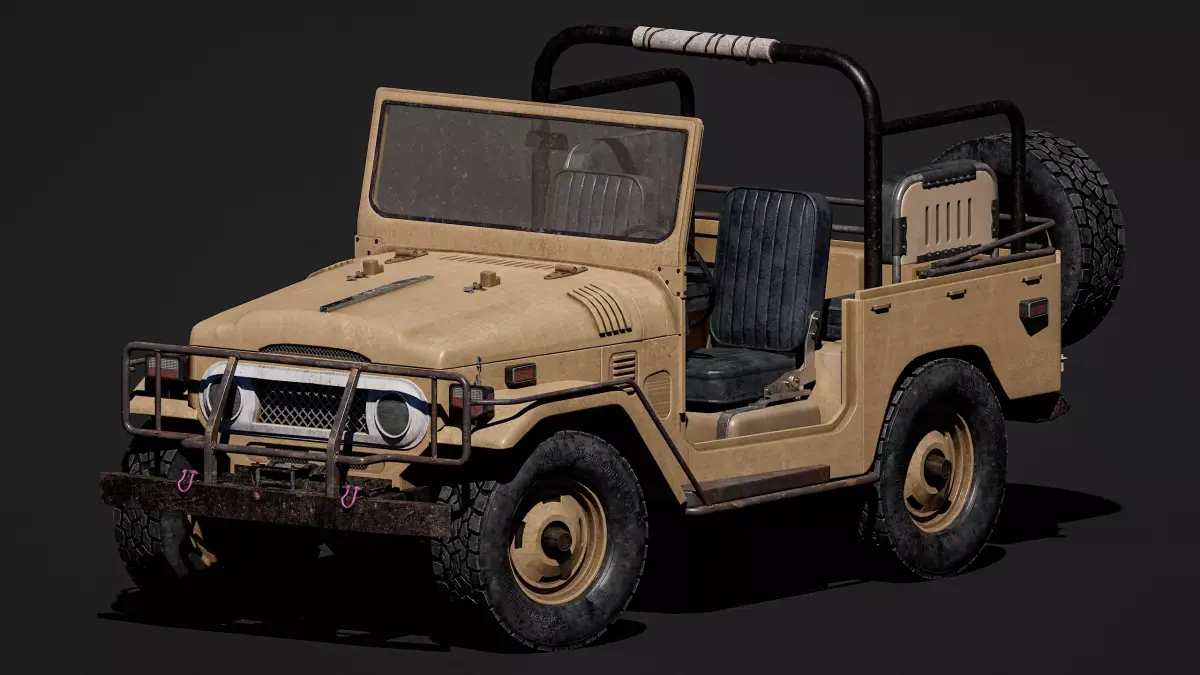 Toyota Land Cruiser FJ40 — a realistic 3D model of the legendary off-road vehicle with PBR textures, signs of age, and desert dust. The detailed body and interior create an atmosphere of adventure, and optimization makes the model ready for gaming.